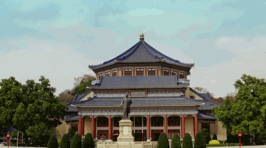 八角形宫殿式建筑的中山纪念堂,运用了建筑力学的结构原理,跨度达71米的空间内不设一柱。