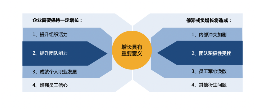 在“增长速度”前面,我用了一个定语“合理的”,任何一个企业,如果没有一定的增长速度,必然就没有活力;一个发展好的、充满活力的企业,一定在某段时间中是保持稳定增长的,它的增长可以不很快,但一定保持增长的趋势,这样企业中优秀的人才才有成长空间,企业的活力才能更好。