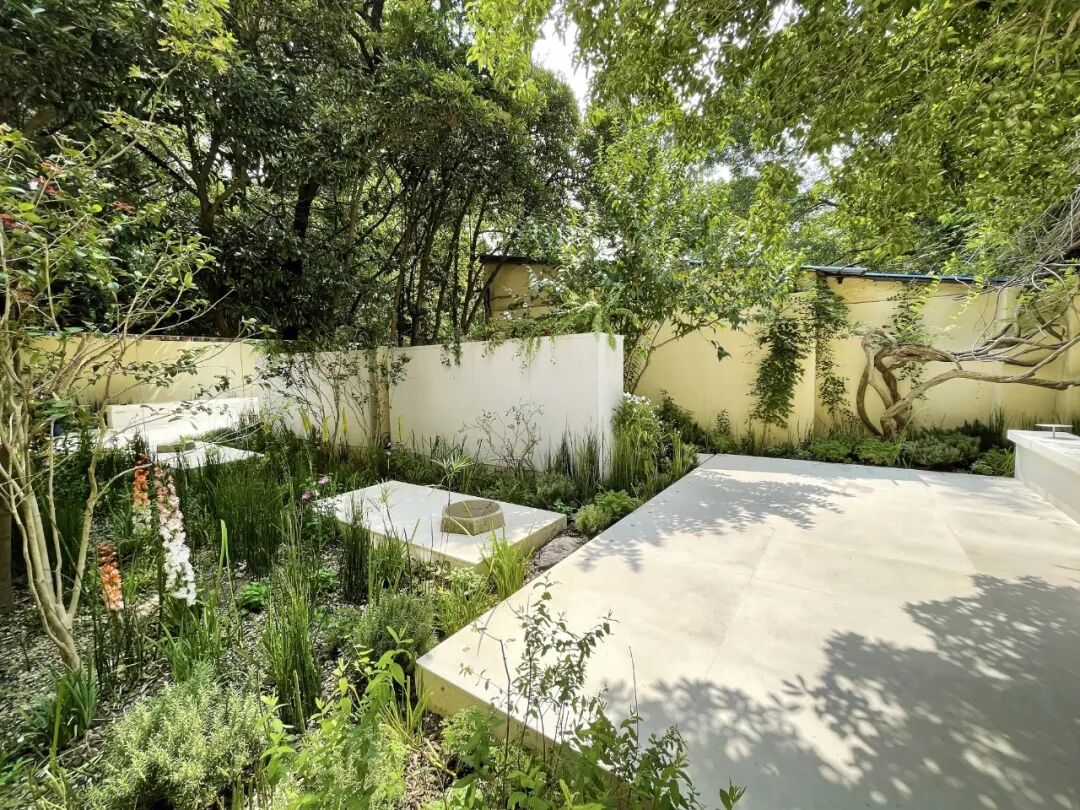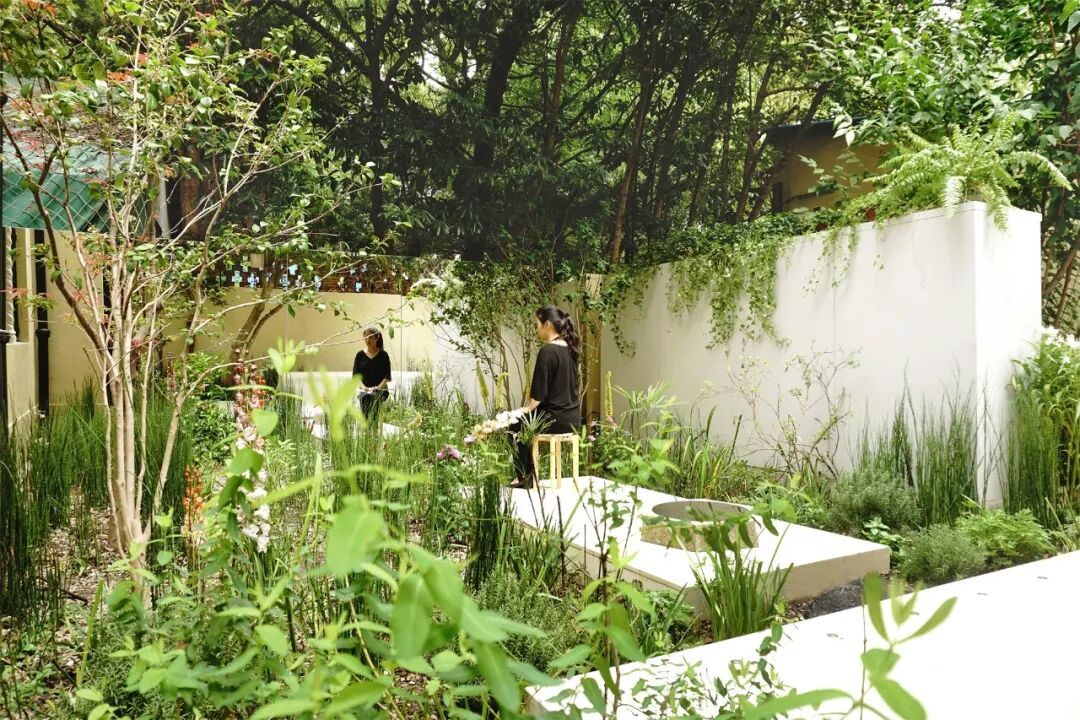 如中国传统水墨画中“留白”带来的无尽想象空间,庭院设计采用了”留绿“的手法。我们将场地现有的“绿”最大程度地进行保留,让整个空间由各式姿态优美的植物环抱或点缀,使其产生优美的构图与意境的想象。