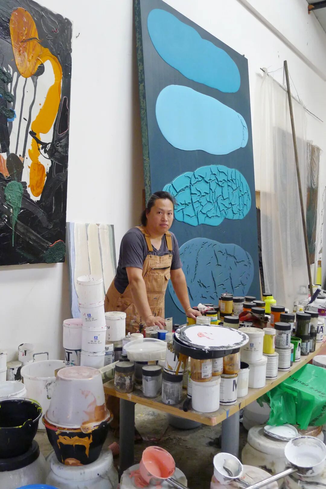 “与策展人鲍栋之前就有过合作,所以这次展览非常默契。”关于‘惰’这个观念,源自颜料的缓慢流动和与画布之间相互依靠的关系。”
