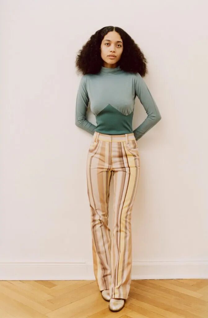在2022春夏系列中,Anne Isabella 关注的是20世纪70年代的新艺术复兴。印花形状借鉴了新艺术的有机形状——花朵和卷须,在裁剪中结合了更多的迷幻条纹和新运动的细节。