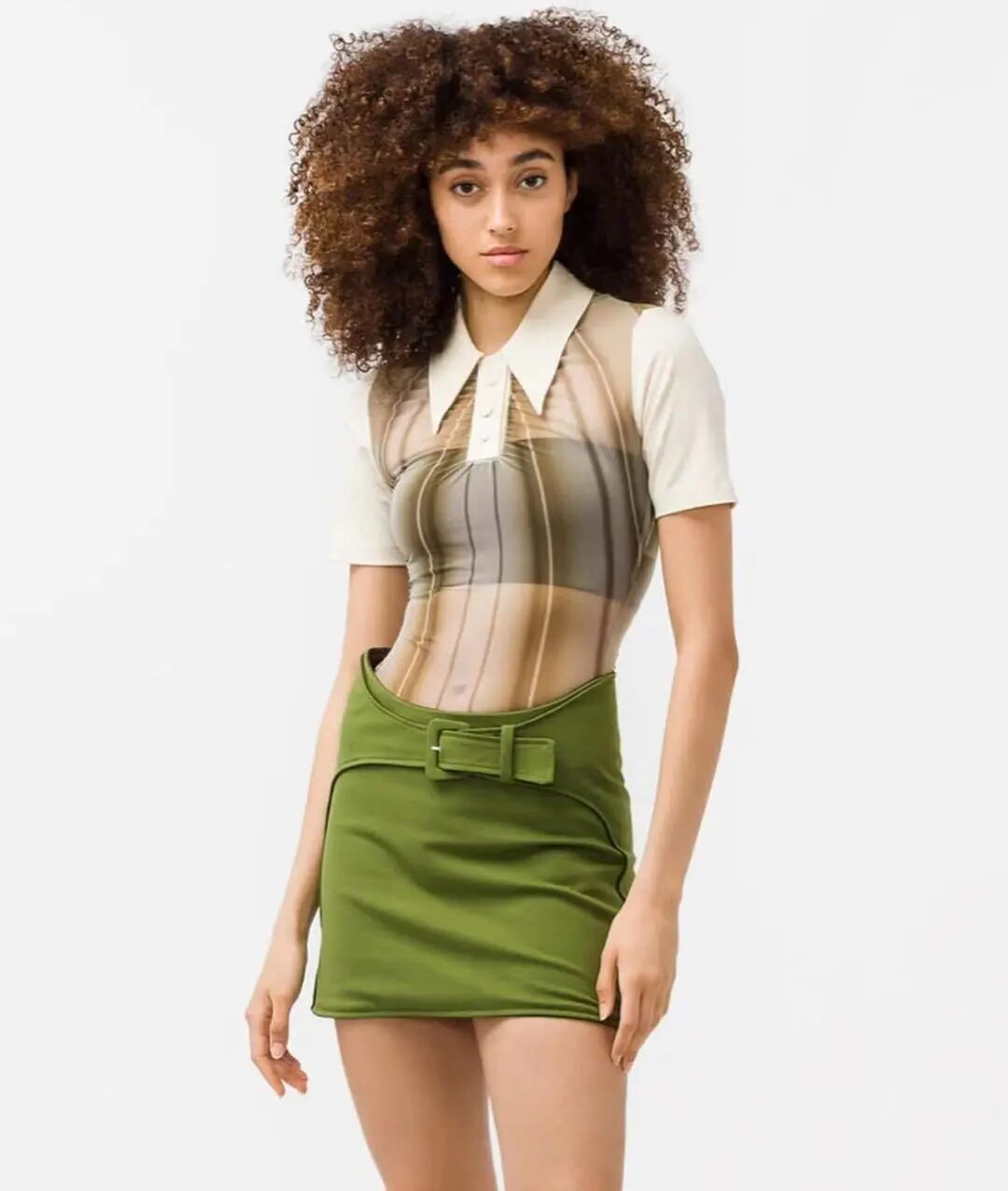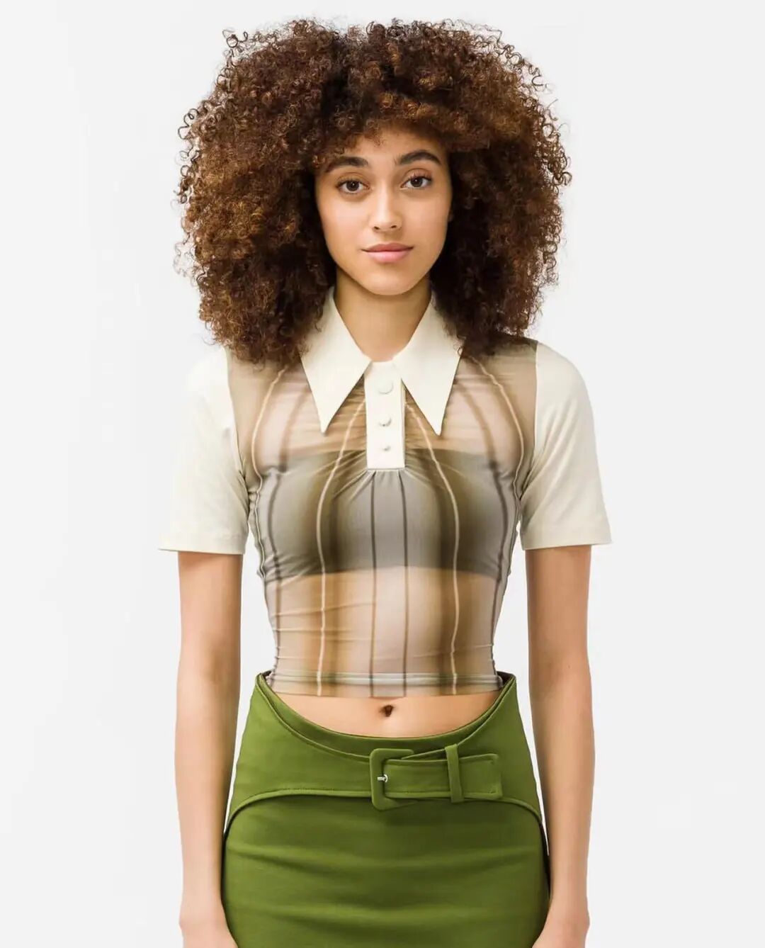 这个系列大部分作品都是原始轮廓和扫描仪创造的新信息(融化的按钮和波浪状的裙摆)之间的重建。这让衣服尽可能的简单,使印花成为融化的元素。