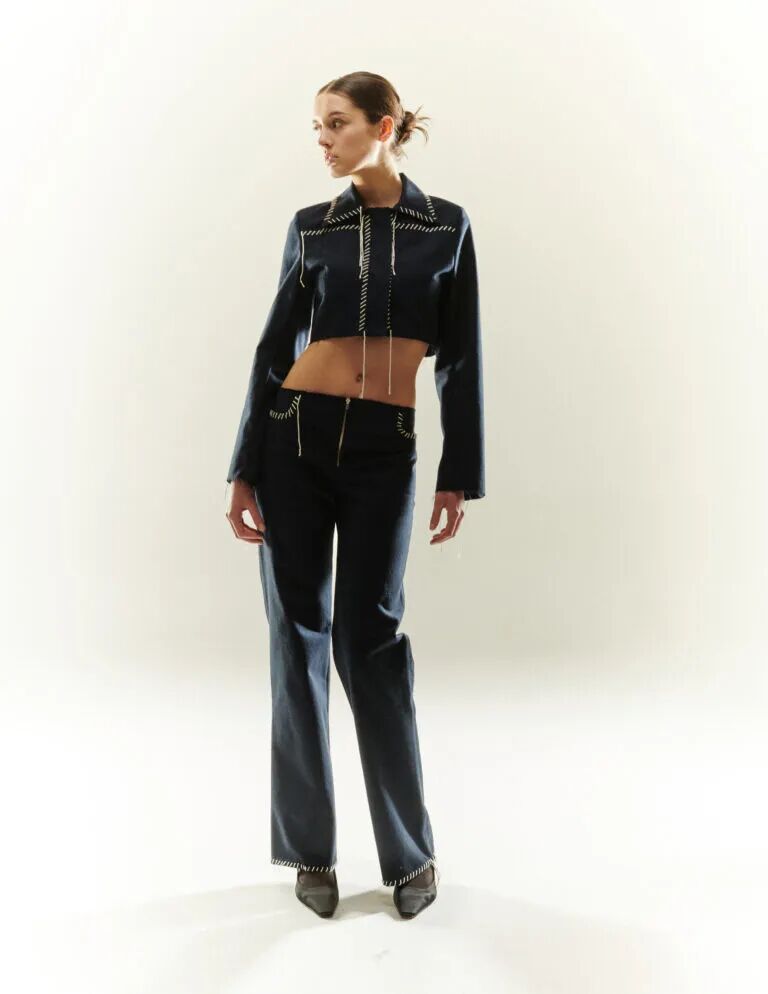 设计师对新艺术时期的建筑抱有好奇心,在情绪板中参考了很多建筑元素,比如 Victor Horta。设计师尝试使用了有机元素,在牛仔布上做激光处理。