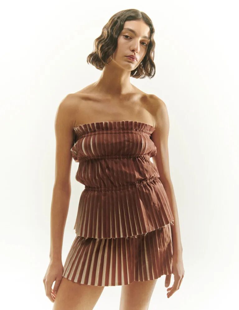 Anne Isabella 用心手工打造的服饰通过大胆的图案与精致的剪裁,以迷幻的优雅格调表达对叛逆的怀想。品牌使用经过认证的再造面料制作服饰,借鉴上世纪六七十年代的复古风格,以基础版型搭配醒目的印花、繁复的细节和精良的剪裁。