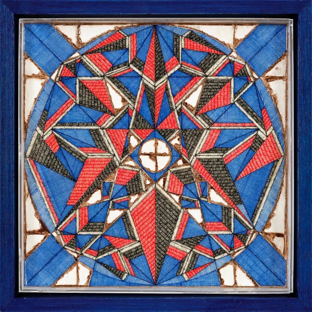李文光受“荷鲁斯之眼”启发,运用“三角结构”和“圆”这些隐喻神力的图形进行创作,以独有的图像逻辑进行推理,使得那些紧密勾绘的具有象征性的几何图形元素,在无限延伸的网格之上重组、衍生、拓展,在有限的空间中做无限的构建,使画面具有了生命,泛动着涟漪,质朴而绚丽。