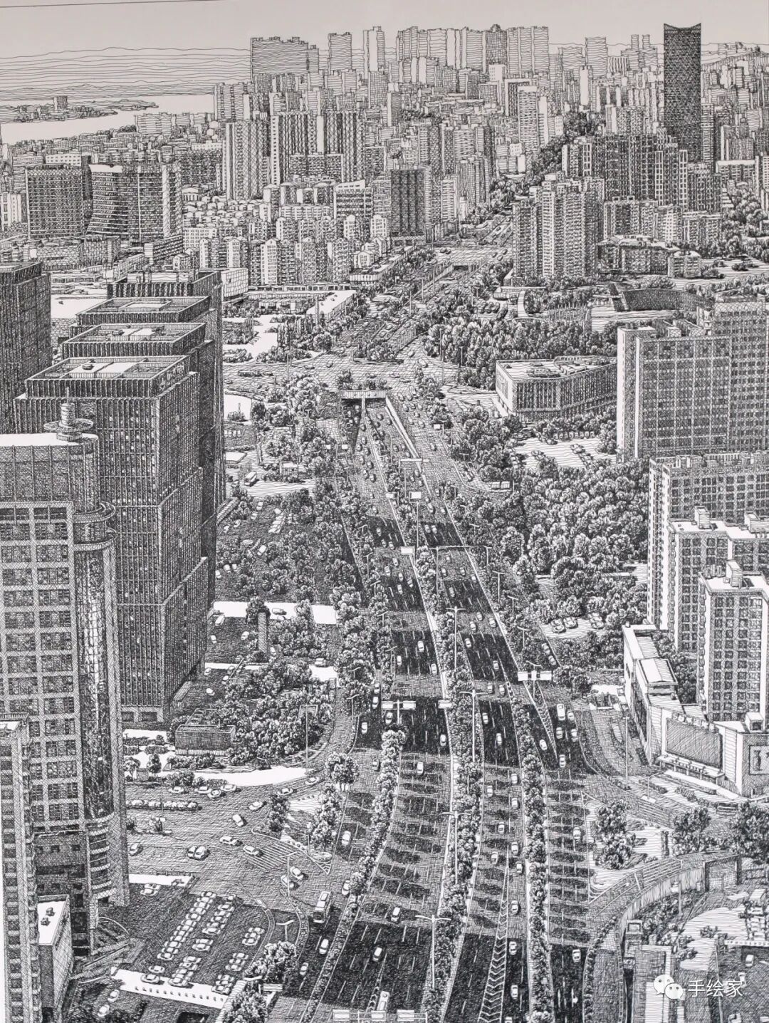 我于一九六零年出生在南京,从此未曾离开这座城。回想我三十岁前的南京,虽然有些修修补补的零星建设,但城市的总体面貌变化有限,那时以为南京会一直以我熟悉的样子存在下去,可是后来的巨变,让人有点找不着北的感慨。去年,画了一幅“中山东路以南”,那是一片南京老城区,在描绘了近百幢建筑物后,确定硕果仅存的老房子唯有大华电影院。今年画河西江东中路,这是无中生有的新城区,画中的高楼大厦多半不知用途也没走近过,完全像是在画陌生城市。我是土生土长的老南京人,对如今的南京也不熟了。