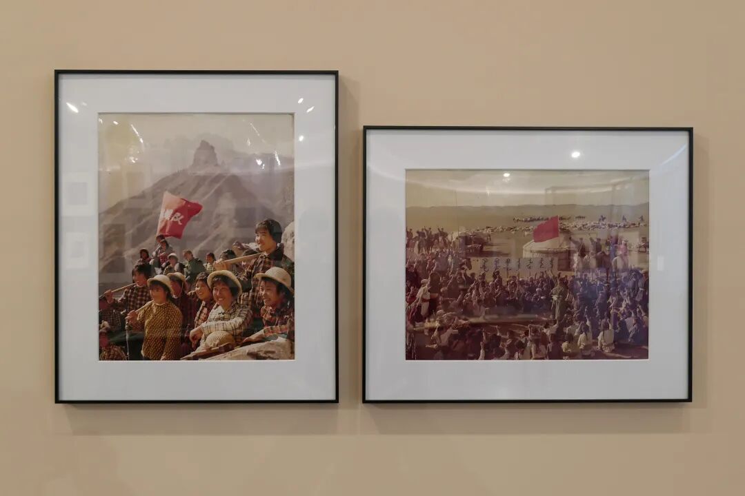 我们在章节介绍旁边的展柜里便可以看见许多不同地方出版的摄影类刊物与文献,而环衬周边的也多是上世纪五十年代的作品,大多为壮丽山河等风光摄影,反映了那一时期的摄影生态样貌。在另一侧,我们又可以看到以“现实主义的重构”为标题的20世纪六七十年代的作品展出,在七十年代的影像中,我们可以看到许多人物肖像、剧照、建设等场景的出现。这也说明了当时摄影的普及程度以及人们开始有意识地将摄影融入社会的方方面面。其中不乏些许褪色的彩色相片,在褪色的痕迹中沉淀的也是岁月的变迁。