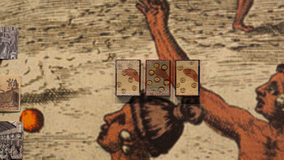 在2022版中,背景图为16世纪的《美国原住民体育》,它描绘了年轻人被倡导加强运动,为战争做好准备的图景。人、射击、球类游戏…犹如对太阳一般的征服与追逐,与图集中强调的“劳作”形成内在对话。《太阳神图集》犹如被打开的书籍扉页,“书籍”中主要作品包括《宫娥》、《女神翅膀》、《我有一个梦想》及《X》系列,并置着太阳神、工厂、劳作、炼金术相关的文献图像。观者犹如走入一部巨著书籍,在其中探寻着它们之间的差异与共性;这些作品以图像蒙太奇的手法,阐释着错综复杂的文化符号。它们在被“翻阅”与“观看”间,显现出隐喻在历史遗留文献中,微妙且穿越古今的连带关系。