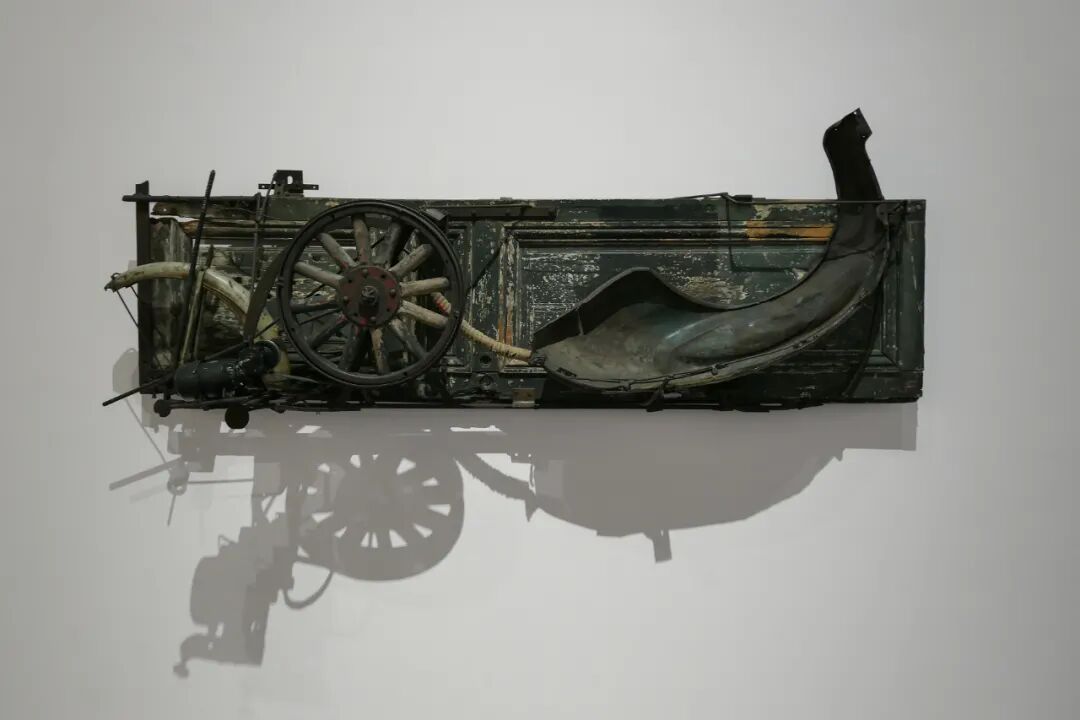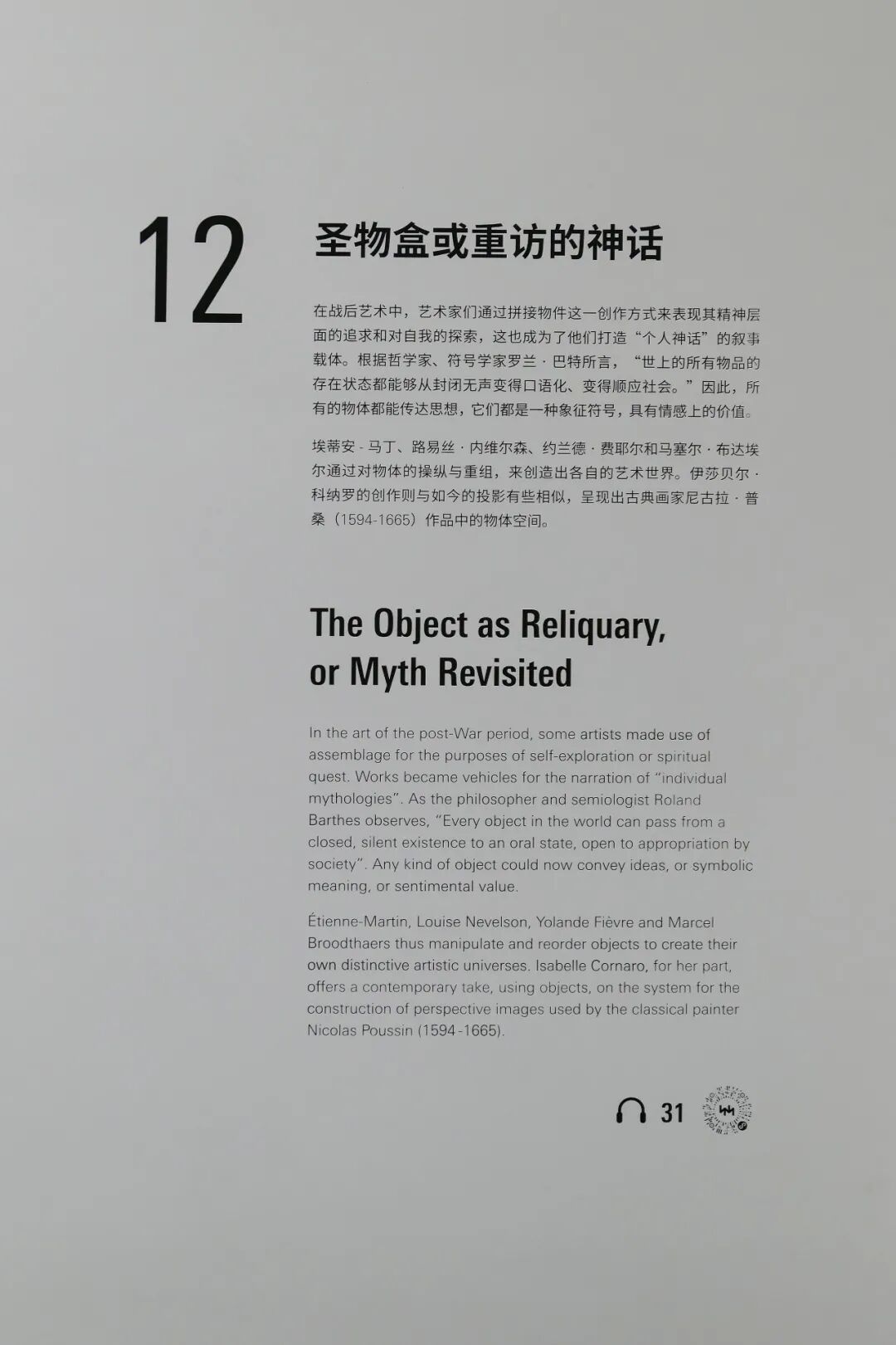 步入第二个展厅,第二部分展现了艺术创作的旷阔景象,也阐明了1950年代消费社会诞生以来,物品在艺术创作中日渐重要的地位。第十二章节中,展现了在战后艺术中艺术家们通过拼接物件这一创作方式来表现其精神层面的追求和对自我的探索,这也成为了他们打造“个人神话”的叙事载体。有趣的是,在当下的成都当代影像馆中,正在展出艺术家马良的个人展览《私人神话》。这并不是纯粹的偶然,“私人神话”这个展览的名字源自于美国文化学者约瑟尔夫·坎贝尔在描述著名的精神分析学家弗洛伊德的时候说过一句话,“梦是私人的神话,而神话是公众的梦境”。而在此章节中,“神话”这一词汇的使用是源自于罗兰·巴特所描述的话语中。虽然两者并没有必然的联系,但是可以从作品类似的创作形式中感受到西方文化的影响。