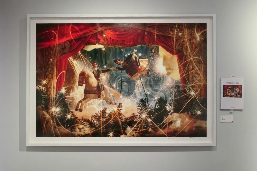 继续观看,在第三个空间中展出了70年代出生的摄影师们的作品。我们可以看到王攀、王轶庶、李伟、张辉、马良等前辈的作品,作为中间力量,他们从建构的观念化影像创作和现实的影像记录两条线索成熟发展。从作品的内容来看,我们可以看到马良这类完全主观构建出影像的观念摄影作品,也可以看到李伟这样的以现实记录为主的摄影作品。再看到大多数摄影人的摄影创作经历,会发现更多的人都会选择同一创作模式或方式持续进行影像作品的创作。