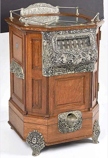 近日,Caille Bros. 5 美分轮盘落地式老虎机以 246,000 美元(折合人民币 1,758,686 元)高价落槌。该件老虎机制造于 1904 年,在 20 世纪 70 年代之前,这件老虎机皆于拉斯维加斯俱乐部使用。官方称,“这种口径的原始机器十分少见,并且是一部未受破坏的老虎机”。其外观华丽,配有橡木橱柜装饰及镀镍铁铸件,并带七个硬币槽。