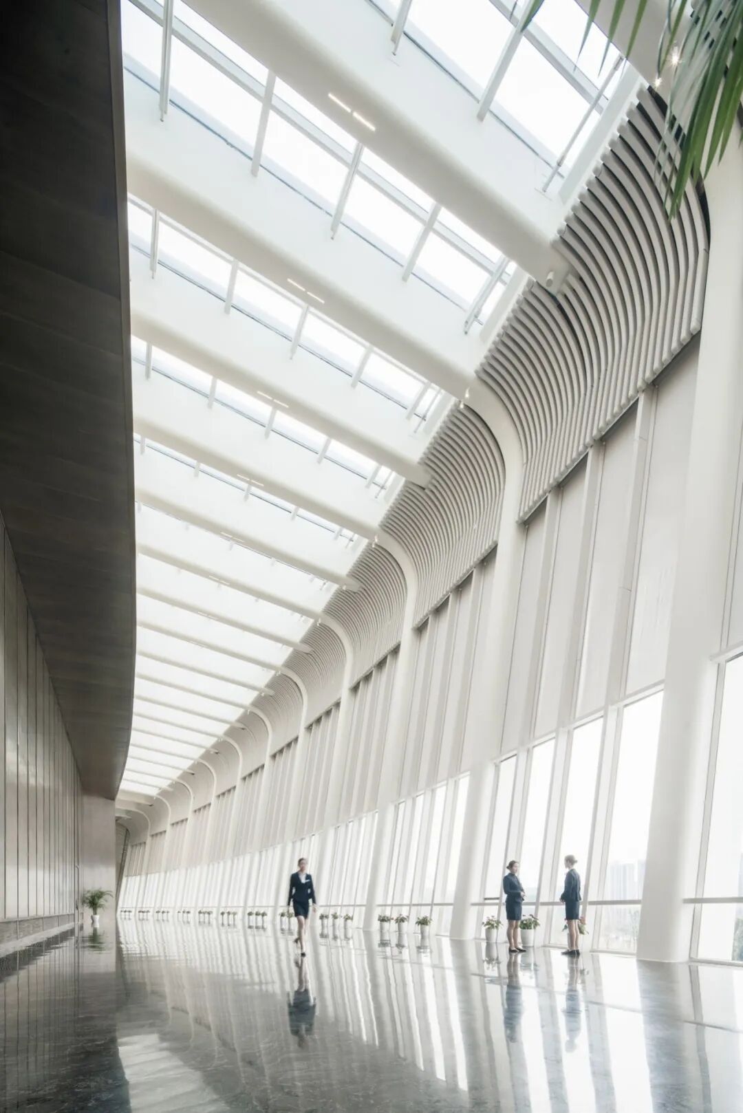 设计原则中的“简约”是指建筑的造型和空间均由“Y型柱”系统构成,“Y型柱”与机电等多系统合一,使得建筑本身无多余的造型装饰元素,体现出简约性与本真性。