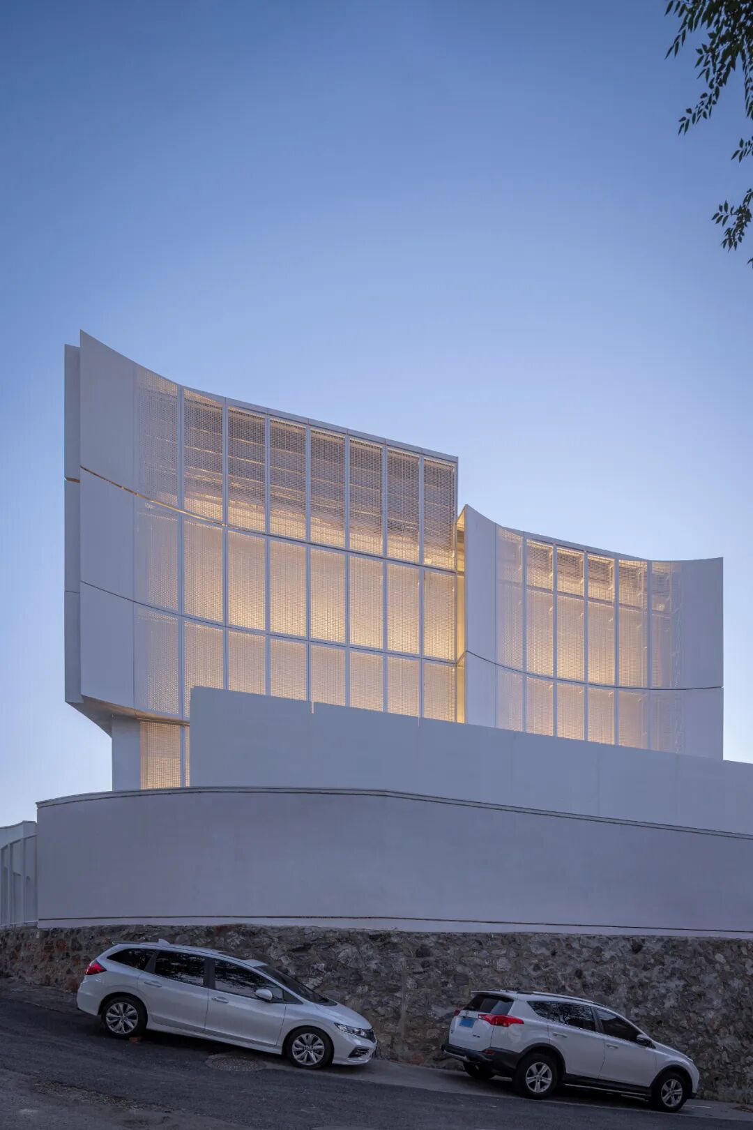 “沿市井小街爬坡而上,数个转弯之后,豁然望见高耸的台地之上矗立着一座宽阔的建筑,不由联想到雅典卫城之上的帕特农神庙。因此,探究建筑形象与城市精神的契合就成为本项目的设计原点。”
