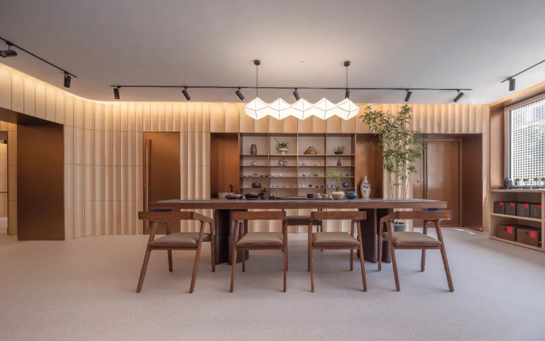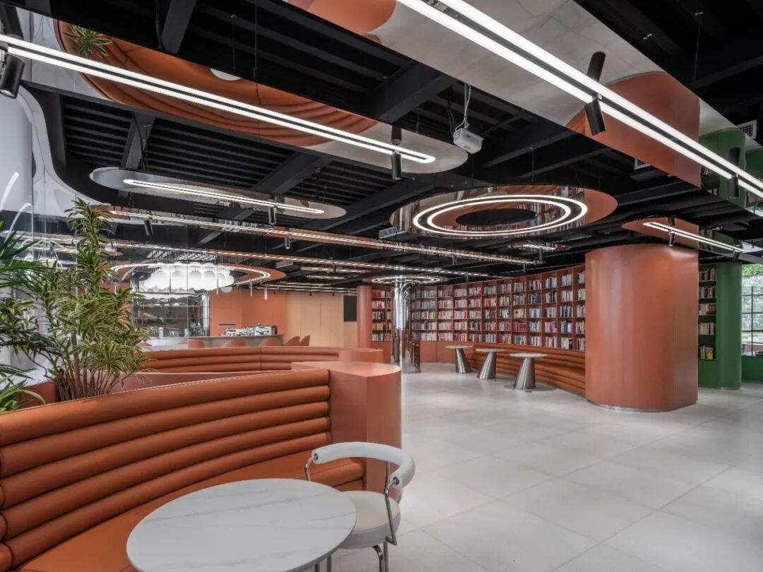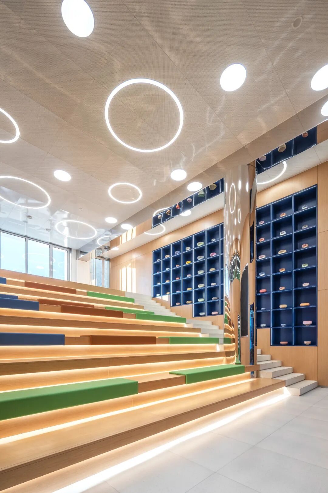 关于室内空间的设计语言,我们认为首先要呼应建筑的独特形式,此同时,各个业态空间也应当具备统一的形式逻辑。通过隐喻的设计手法,我们最终提炼和发展出一个专属于大连三十七相的形式语言:“波动”。在室内空间中,墙体、家具和天花大量采用起伏的波浪形式,并通过彼此渗透打破功能分区的界限,营造出一连串如流水般的动感空间。