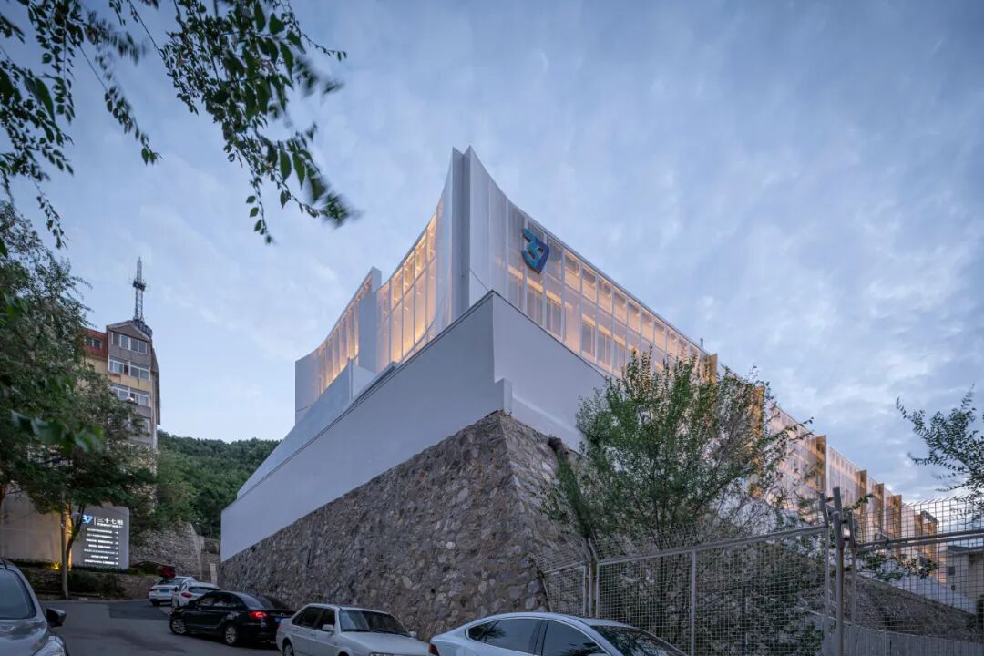 建筑形象的萌生源自对于大连城市精神的探究。山地、丘陵、半岛、海洋,独特的地理资源以及城市形态,造就了大连山海之城的城市印象。建筑改造的第一直觉就源于这个城市的地理特征,UUA基于建筑的现有体量,从海浪与风帆的形式中抽象提取设计语言,并加以理性的加工和表达,使得建筑形象与城市精神有了一个充分的契合,构建起建筑与人之间的情感交流,赋予建筑新的视觉想象。