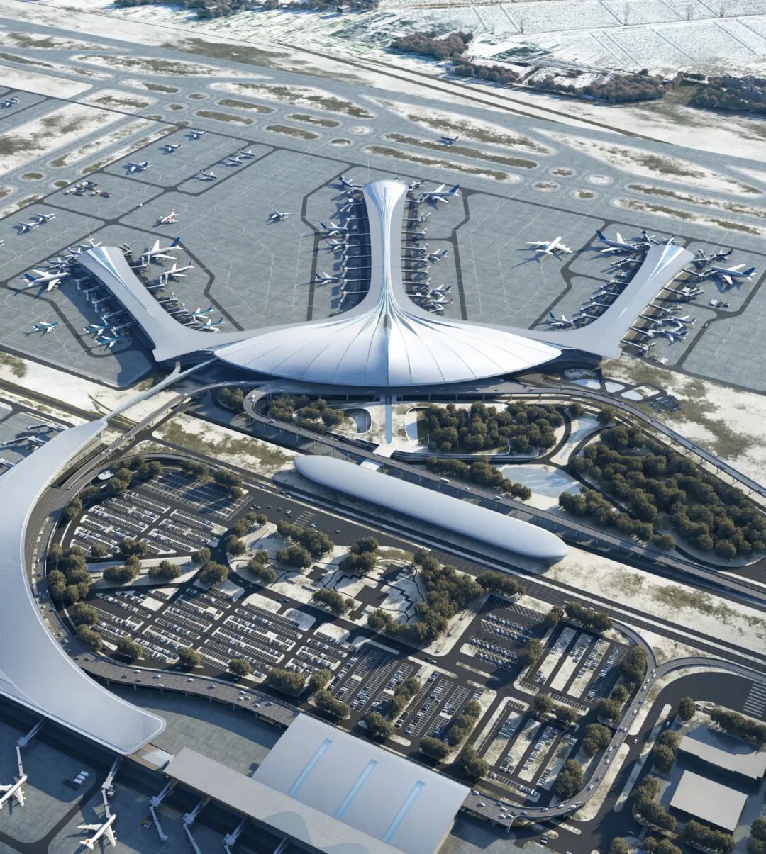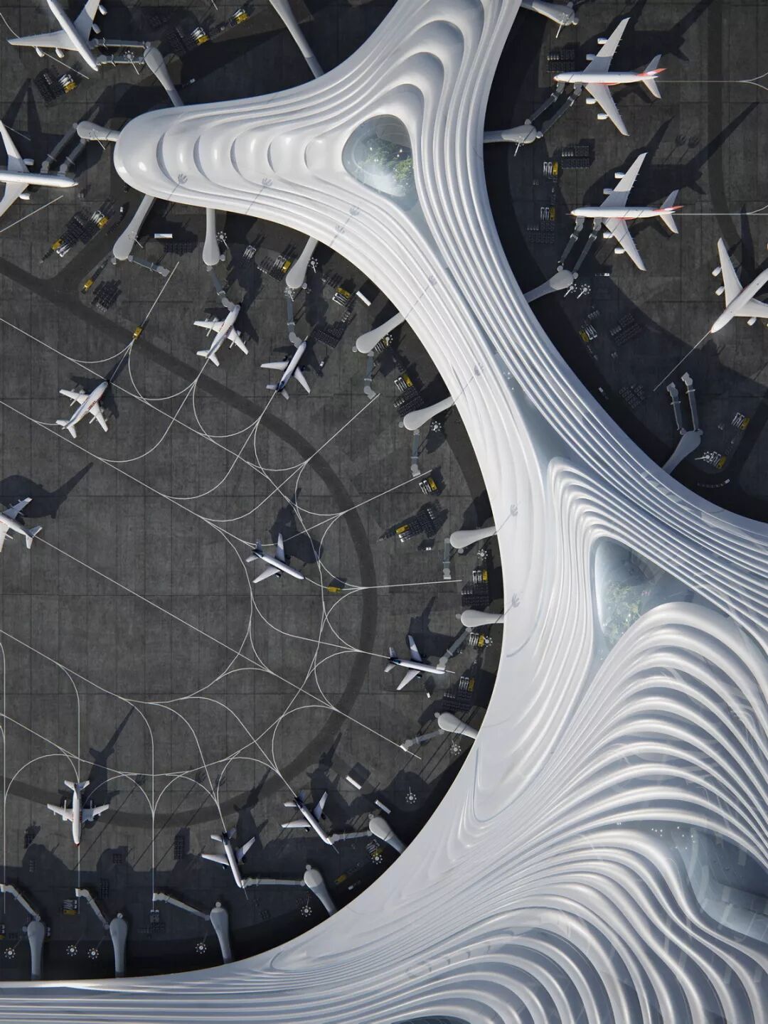△ 航站区整体鸟瞰效果图 © MAD Architects