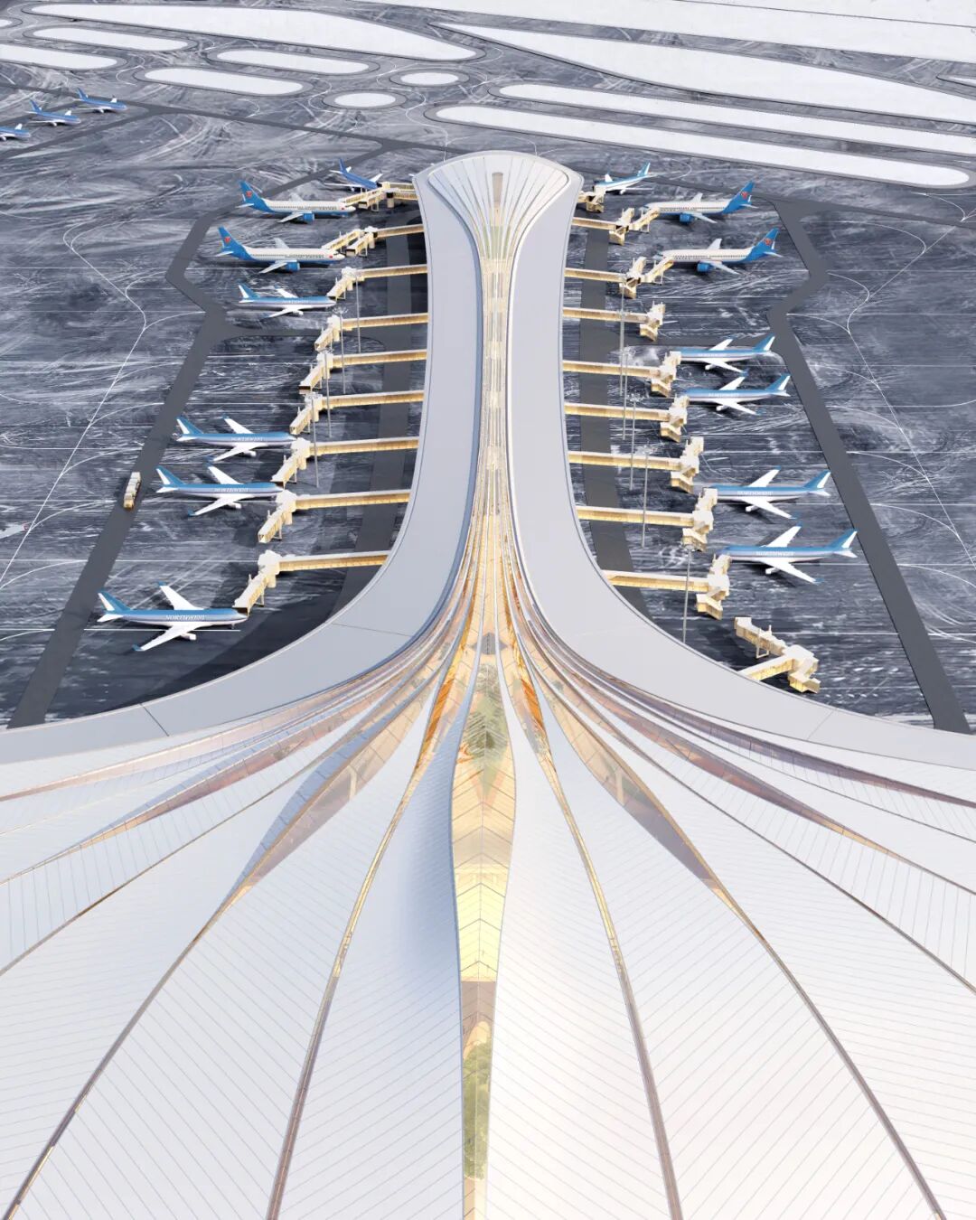 △ 新航站楼整体鸟瞰效果图 © MAD Architects