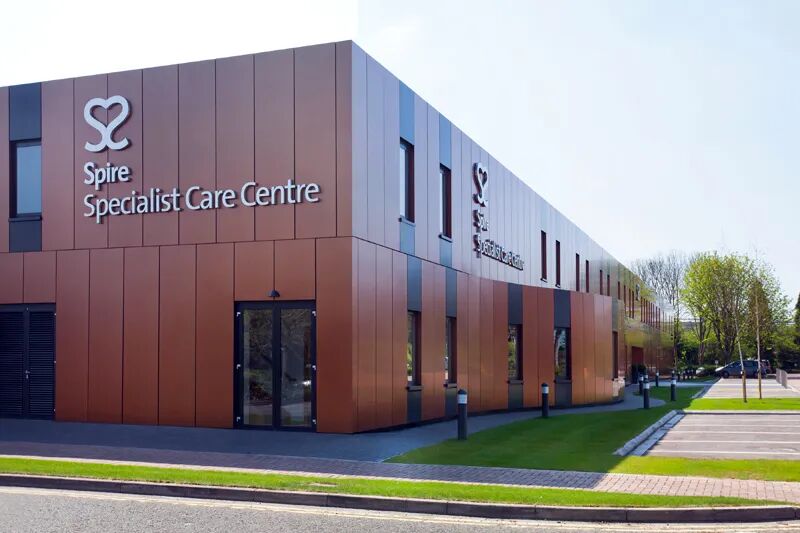 这是位于英国布里斯托尔的一家高级专科护理中心,也是一家专门从事放射性治疗的私人医疗保健机构。护理中心被绿植包围,周边多为红棕色的砖砌建筑。