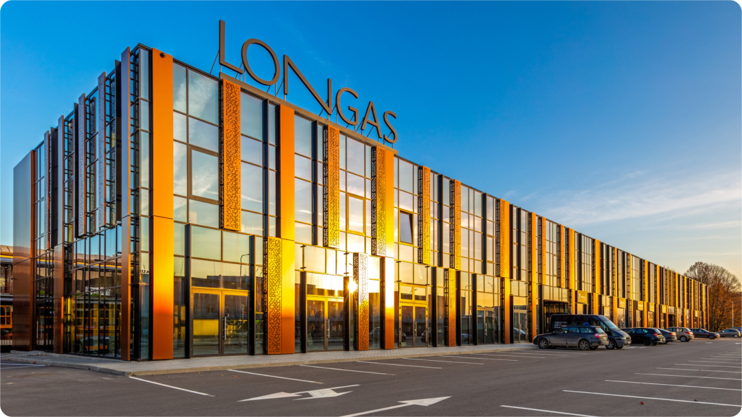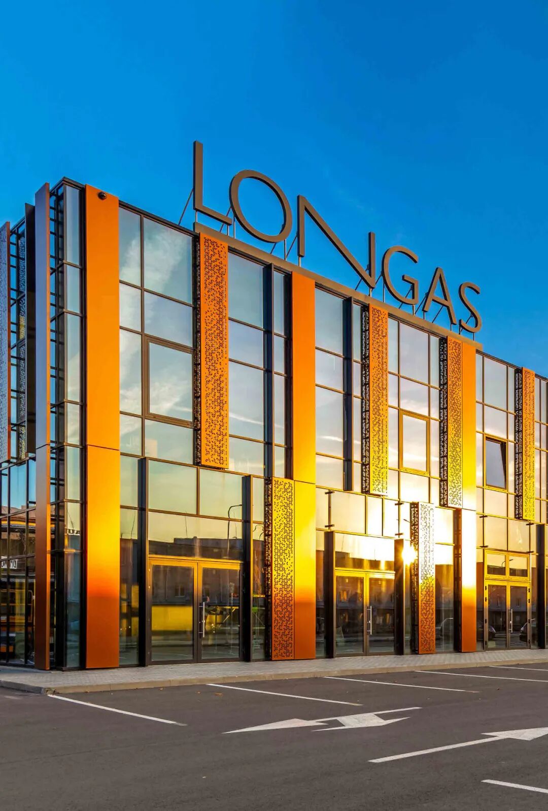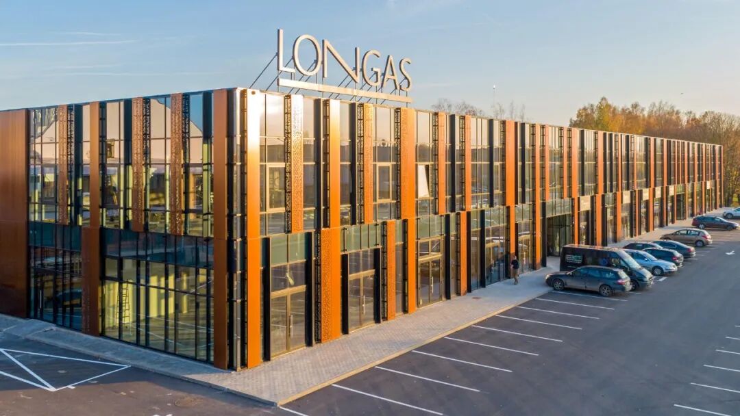 Longas是位于考纳斯城市南部的一座商业办公楼,这座细长的两层楼建筑采用钢筋混凝土框架结构,其位于多元化的郊区,沿着繁忙的主干道延伸。