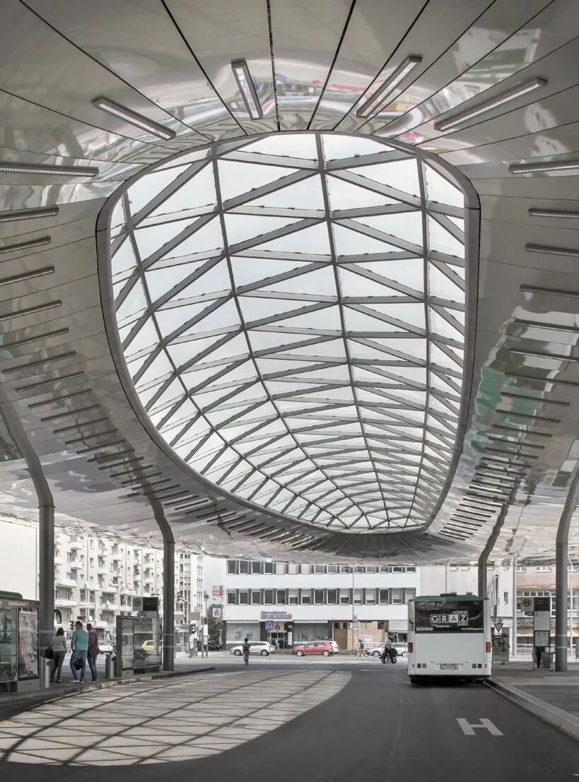 相对室外空间来说,很多室内用的材料并不一定满足室外环境的要求,而用于建筑幕墙的镜面铝复合板,不仅拥有极佳的平整度和刚度、出色的成型性,且还具有出色的耐候性,能完全适应室外的环境要求。下面我们再来看看几组用于室外天花吊顶的铝复合板项目,藉以开拓您的设计思维和创意。