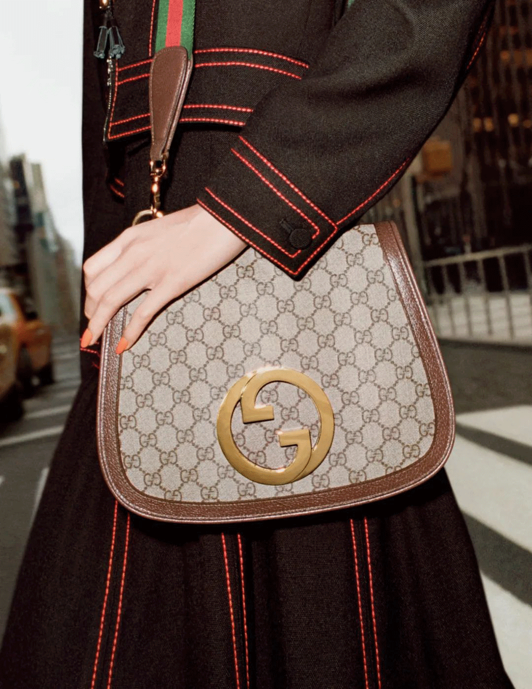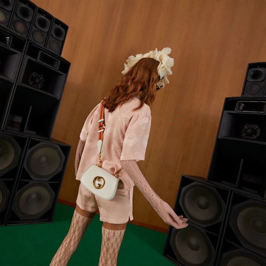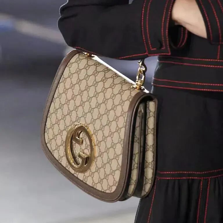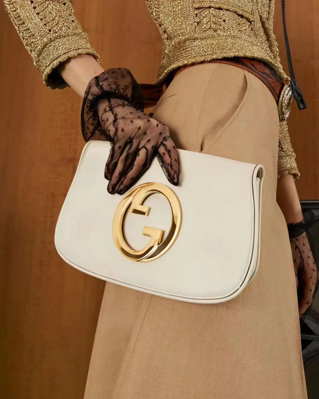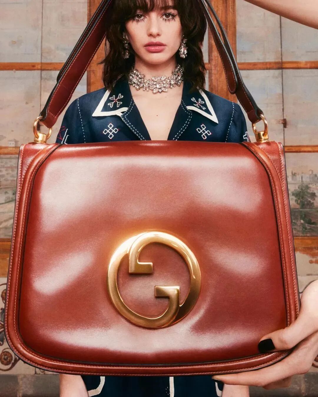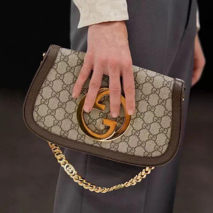 如果logo自己有生命的话,它大概也会惊奇,居然能以这样的形式再看看现在的人间吧?并且GUCCI BLONDIE系列手袋并不是近期才横空出世,早在2021GUCCI在洛杉矶好莱坞大道举行的《古驰爱的进行曲》时装秀中就已经首次亮相于公众面前。