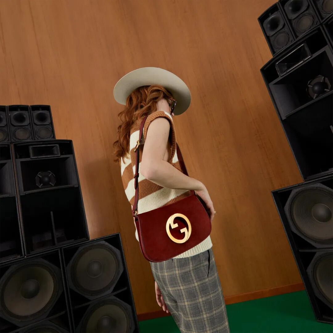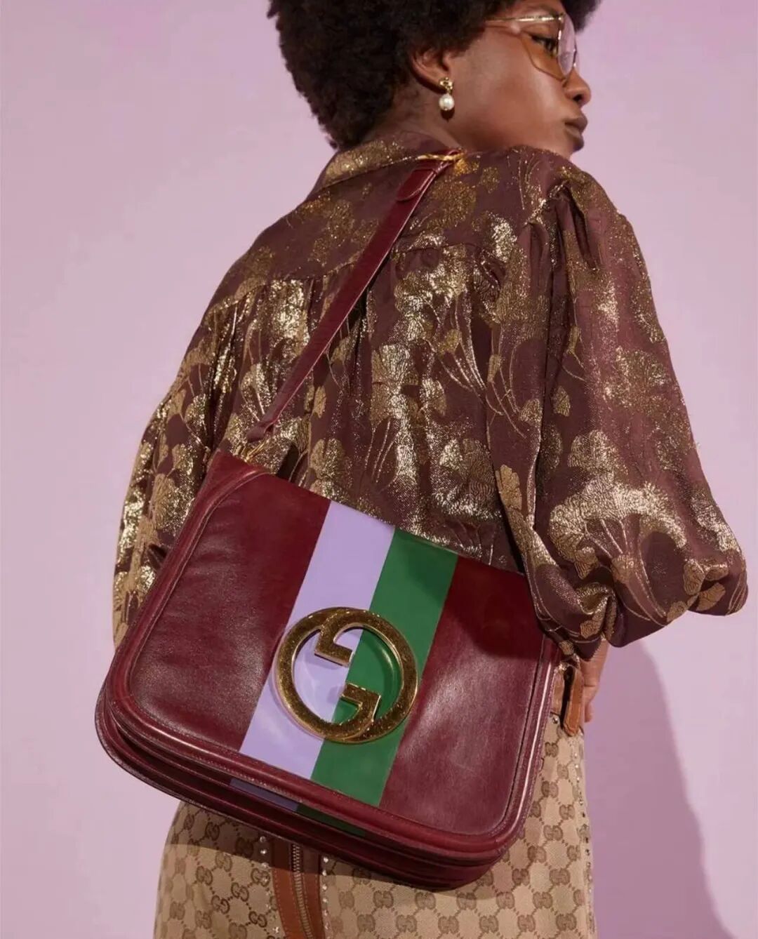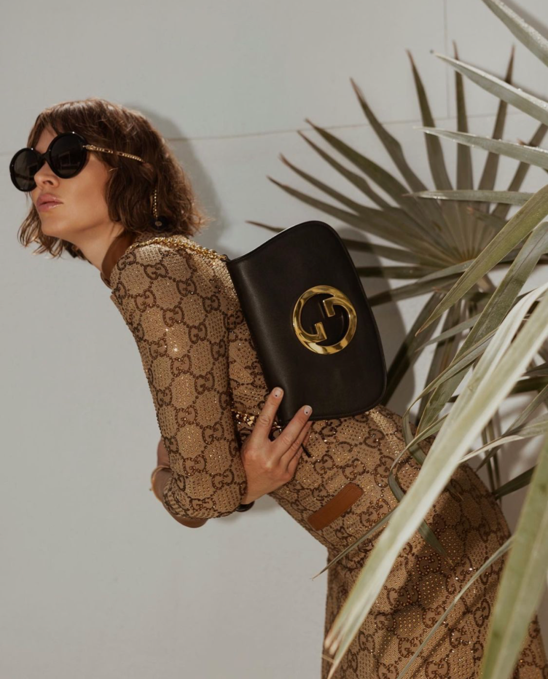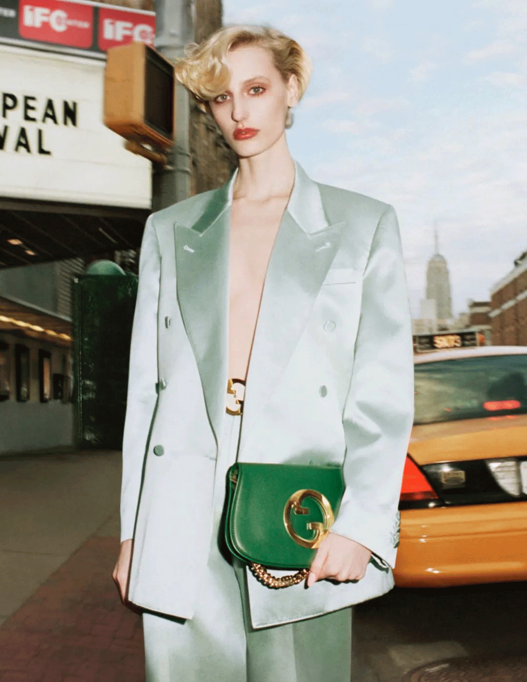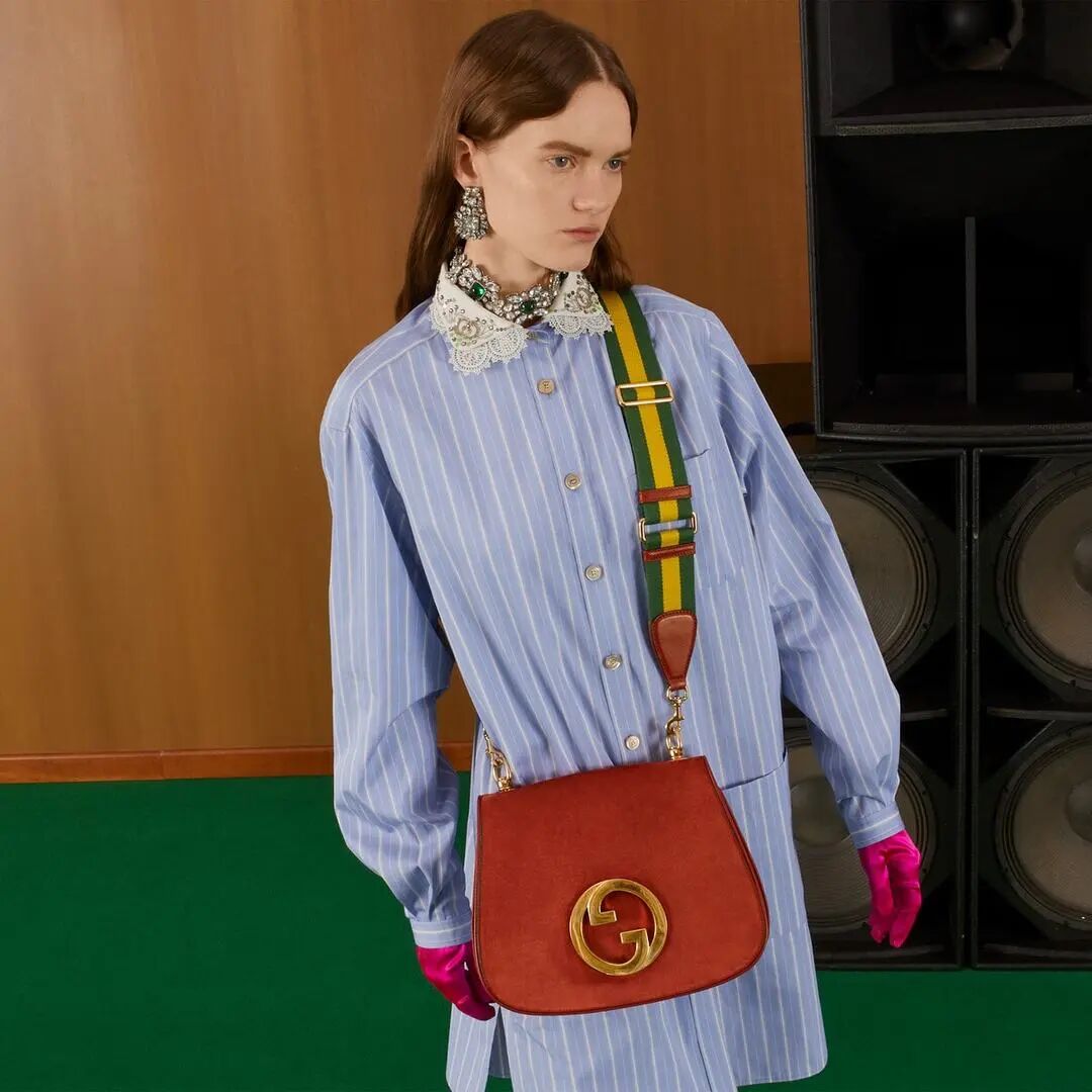 如果logo自己有生命的话,它大概也会惊奇,居然能以这样的形式再看看现在的人间吧?并且GUCCI BLONDIE系列手袋并不是近期才横空出世,早在2021GUCCI在洛杉矶好莱坞大道举行的《古驰爱的进行曲》时装秀中就已经首次亮相于公众面前。