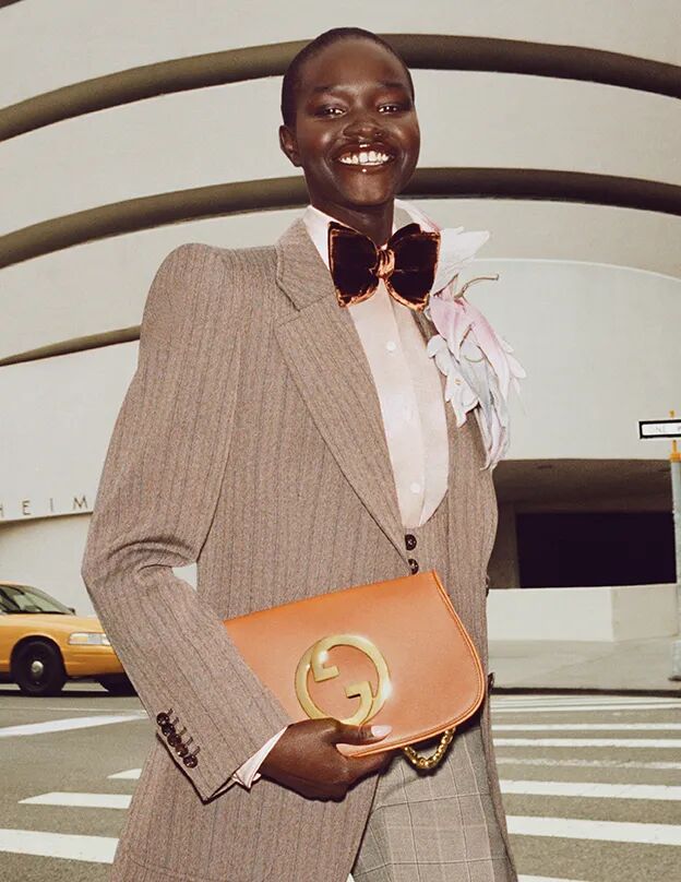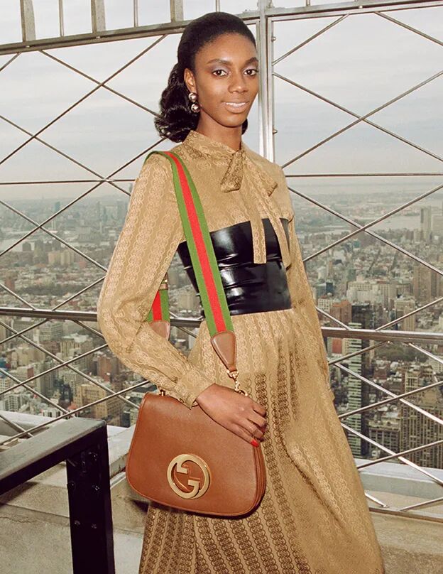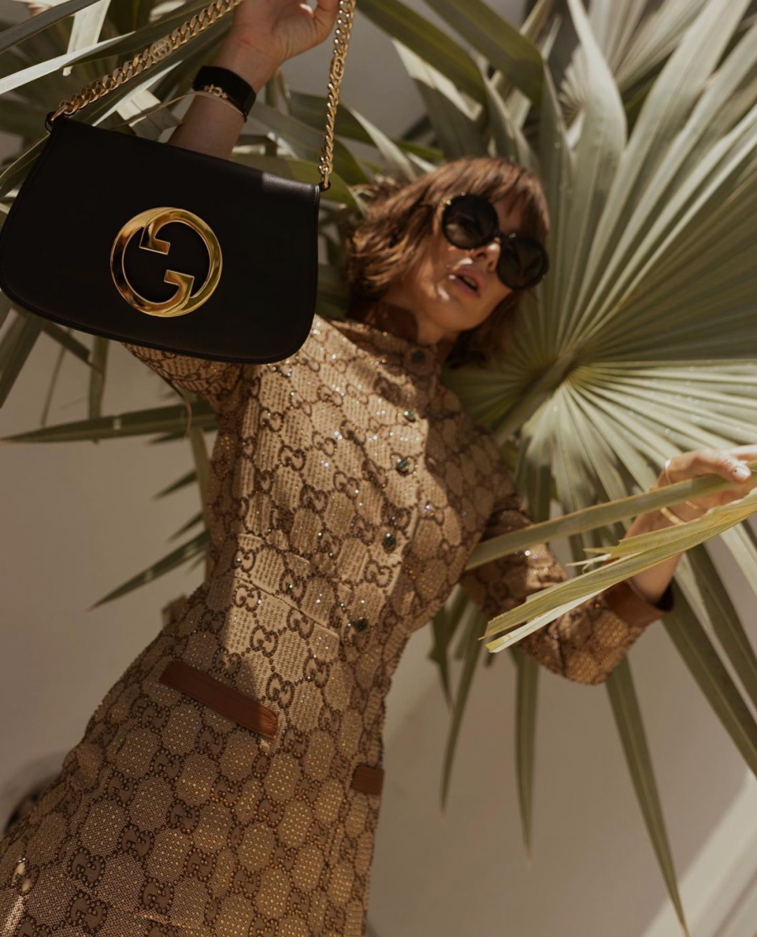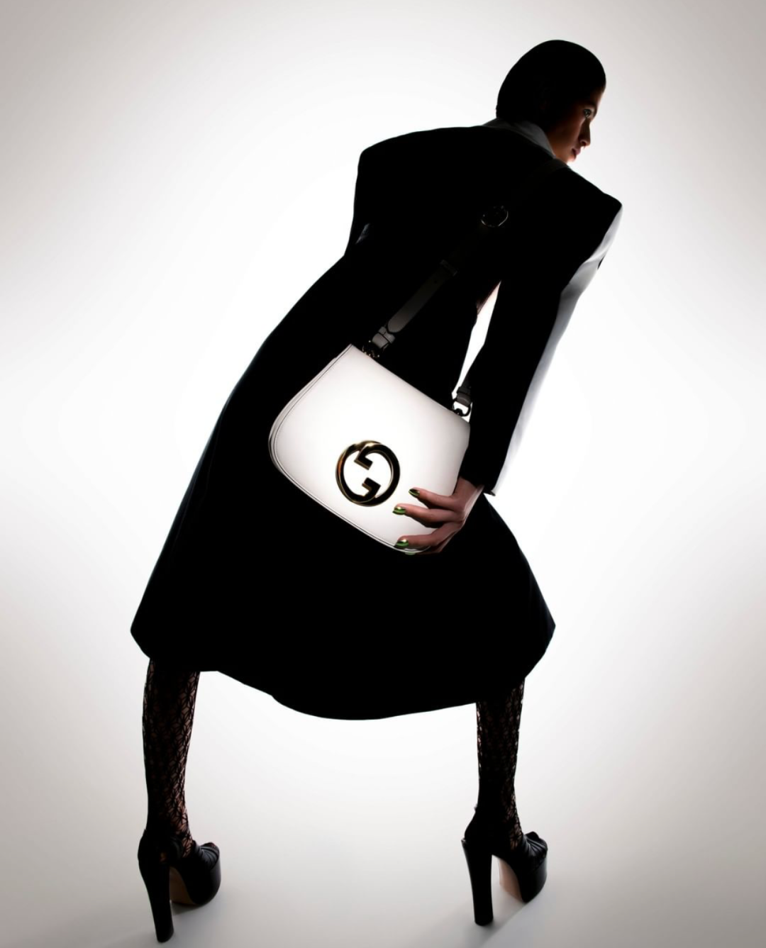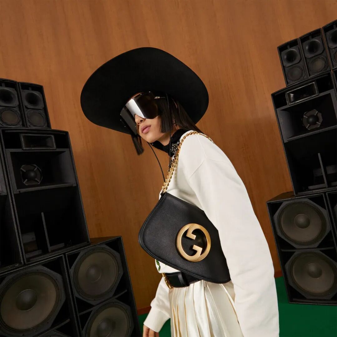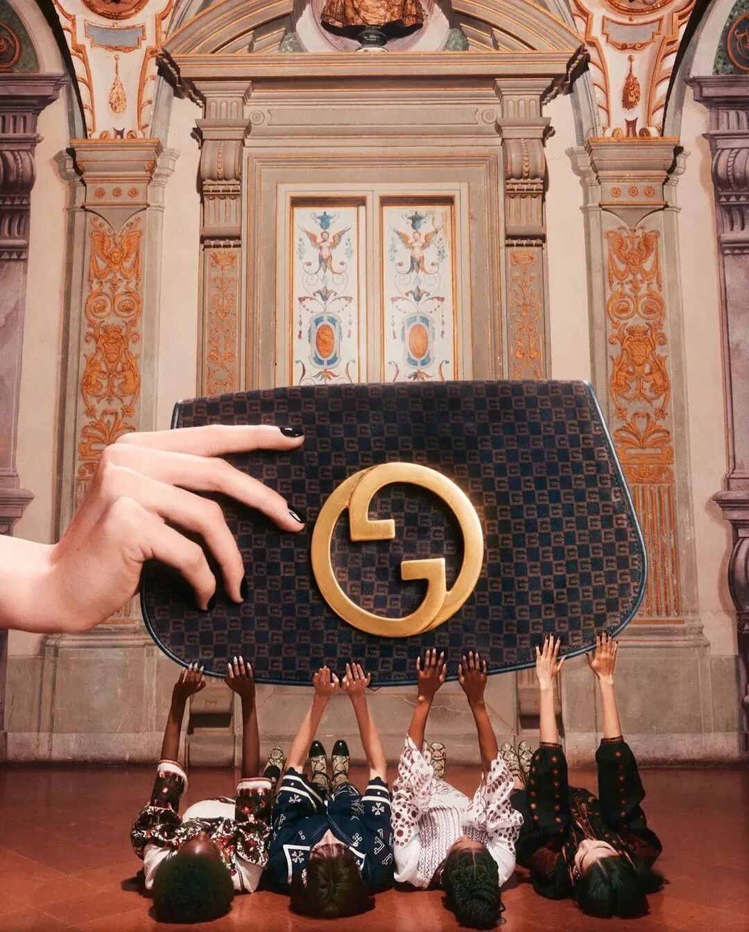 如果logo自己有生命的话,它大概也会惊奇,居然能以这样的形式再看看现在的人间吧?并且GUCCI BLONDIE系列手袋并不是近期才横空出世,早在2021GUCCI在洛杉矶好莱坞大道举行的《古驰爱的进行曲》时装秀中就已经首次亮相于公众面前。