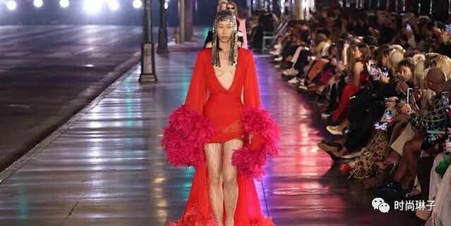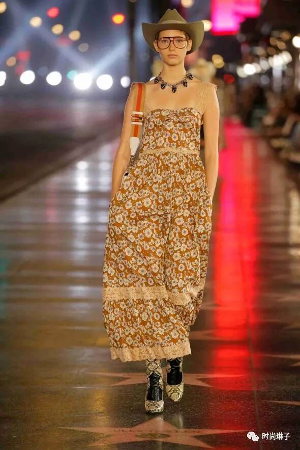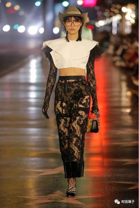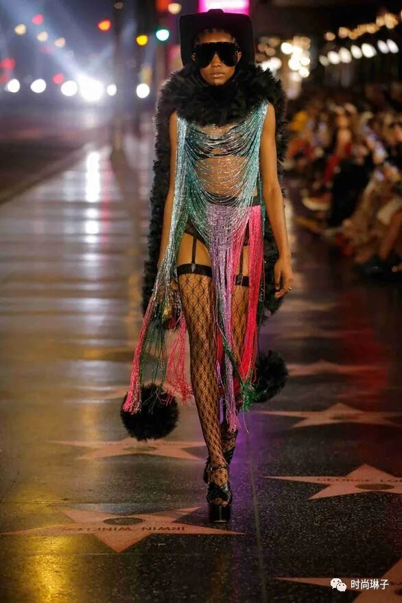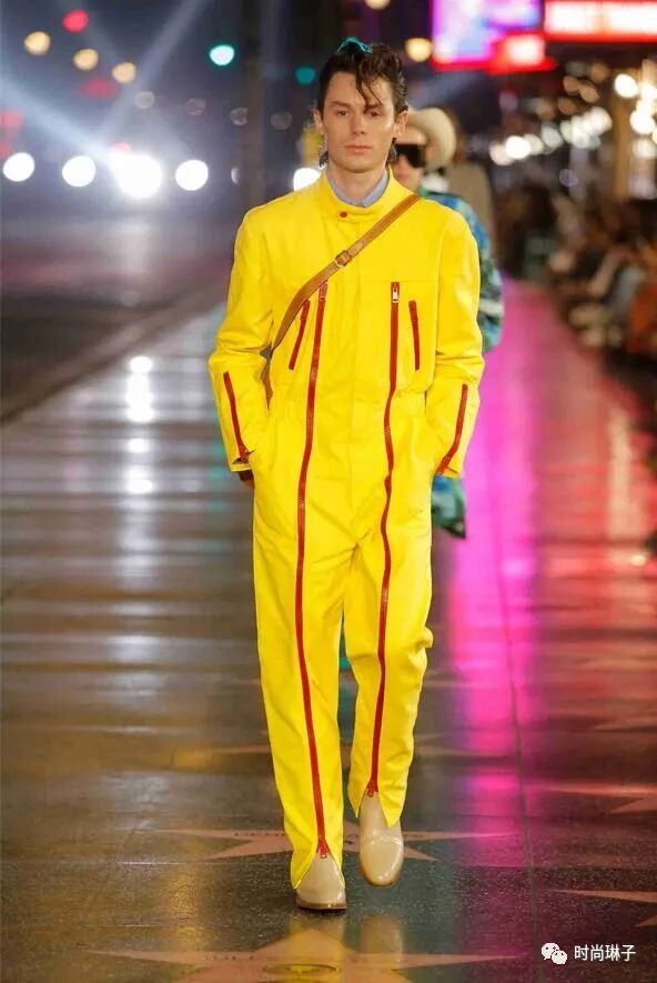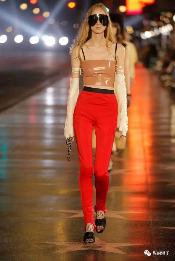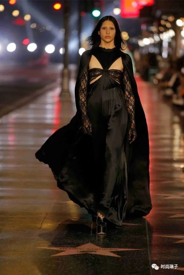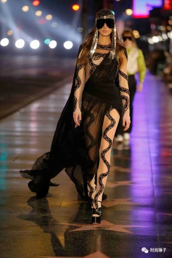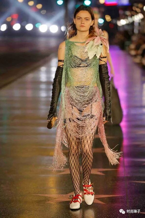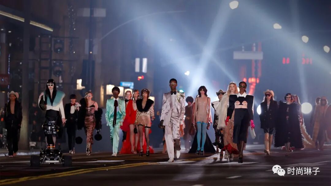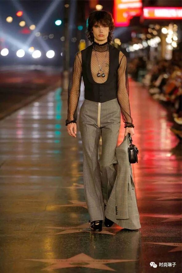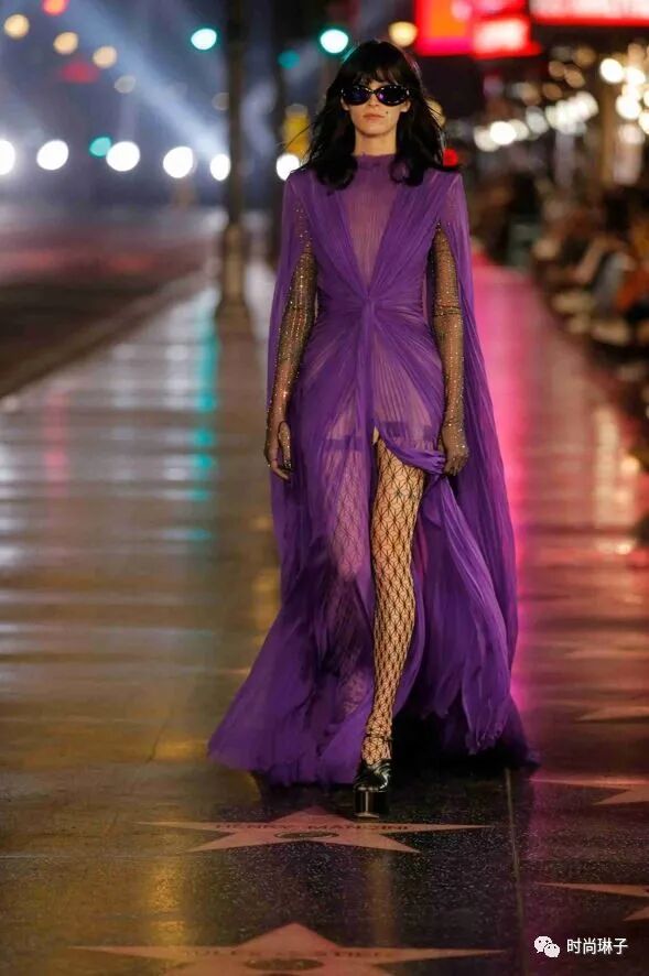 该季模特从好莱坞大道著名的中国剧院TCL Chinese Theater 走出,为这场户外大秀拉开序幕。