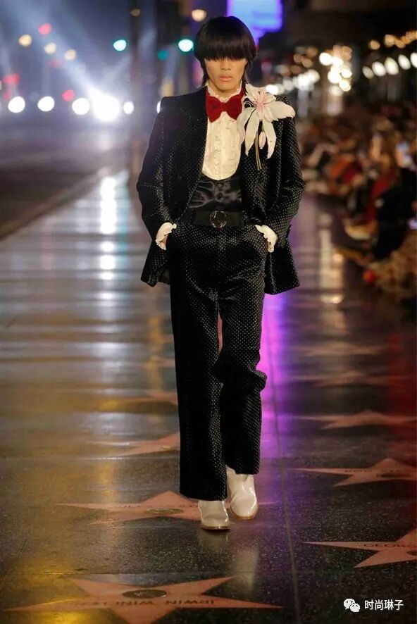 在古驰家族电影首映前夕, 他带着Gucci Love Parade《古驰爱的进行曲》全新系列重返美国举办大秀,并选在他从小梦想的天使之城----位于洛杉矶的好莱坞大道。