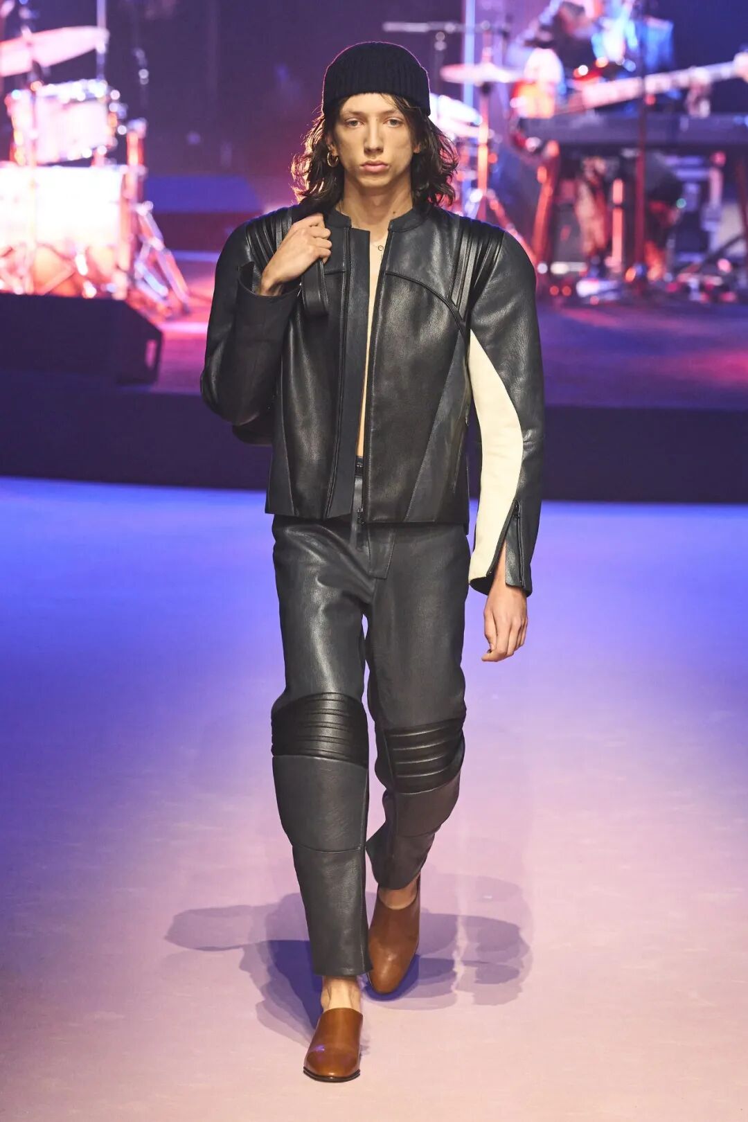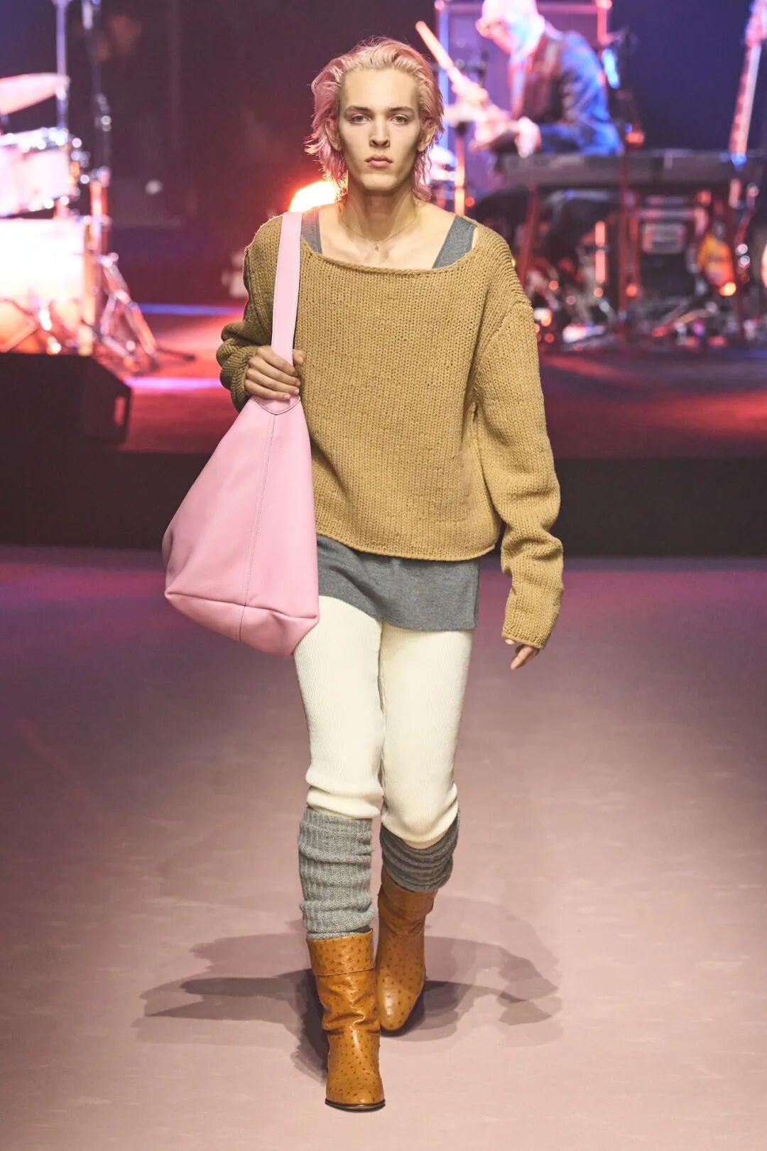 毛茸茸的豹纹包和与之搭配的粉红色靴子时髦轻松。摩托单品、针织衫和柔和的运动装带来有目的地游历、混搭的审美。柔软的绗缝机车靴,则以多种颜色首次亮相。