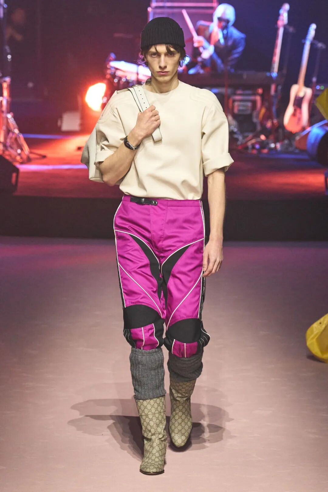 本季Gucci男装系列强调一种“即兴的美学”,褪去了复古繁复的印花装饰,带来了简约实穿的全新风格。