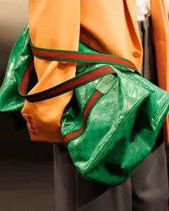 全新漆面用来诠释1970年代创作的Crystal GG经典花纹样式,活力色彩与做旧粉色与耀眼的光泽感融合贯穿系列,工作服、手袋或鞋子,超大尺寸与宽松结构,更增加触感和年轻感。