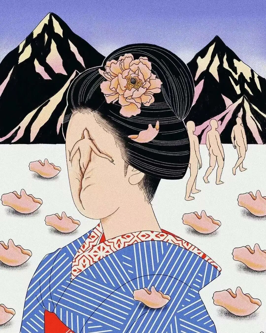 他采用数码技术模仿水彩手绘技法进行插画创作