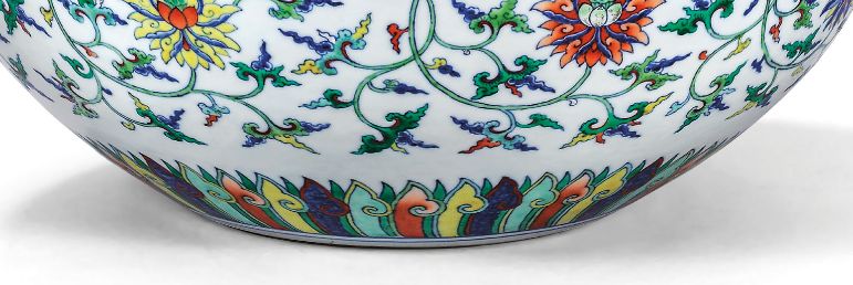 除了传统的青花品种外,五彩、粉彩等彩绘天球瓶也开始出现,而最为珍贵的斗彩却很少应用于天球瓶上,其最主要原因在于,斗彩向无大器。