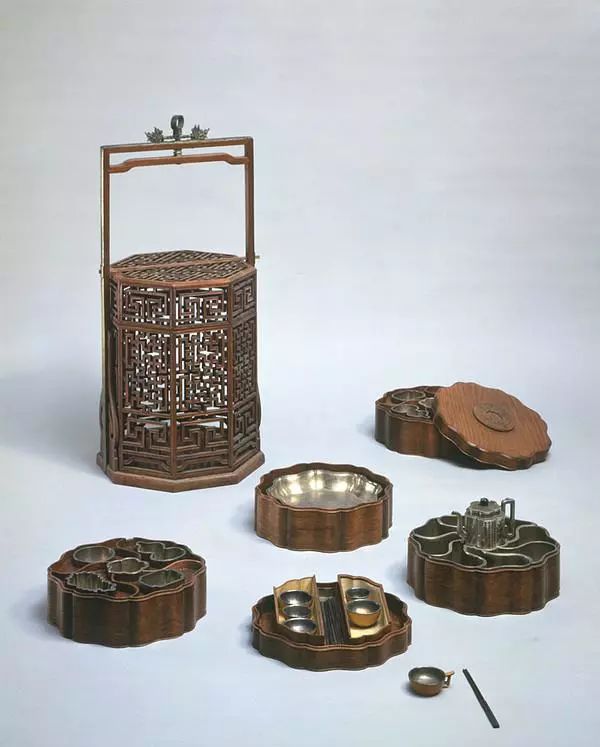 故宫博物院现藏有大量的清代宫廷饮食器皿,其中以清晚期为多。包括火锅、火碗、一品锅、壶、盘、碗、水囤、碟、酒杯、刀、叉子、箸、茶船、食盒等;材质多样,有金、银、玉、水晶、瓷、珐琅、翡翠以及玛瑙等;制造地也分清宫造办处制造、民间银楼制造、外省当地制造进贡等。