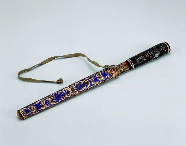 箸,俗称筷子,为饮食器具。此箸应与金镶紫檀柄玉顶果叉和金镶紫檀柄玉顶漏匙为一套。
