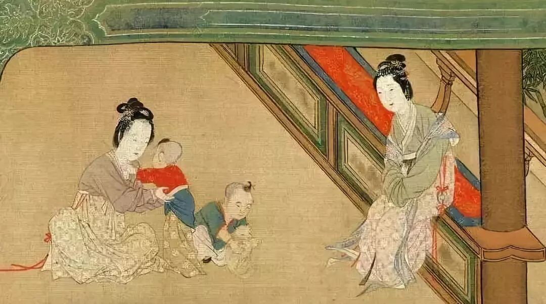 旁边的小孩童正由一位婢女照应着