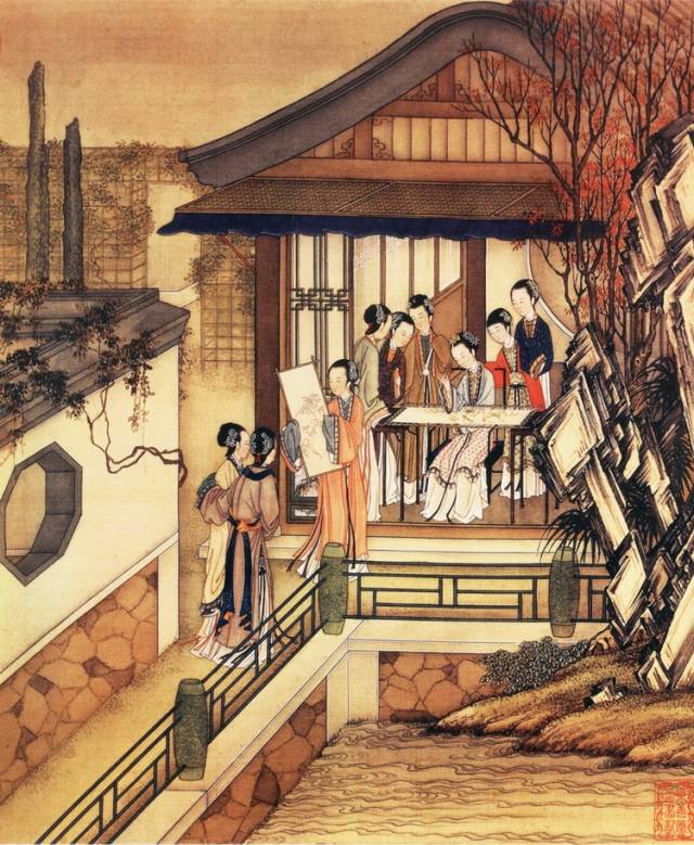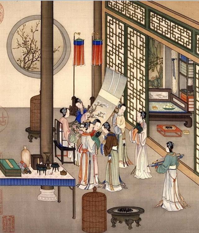 疏影帘栊对绣屏,鸳鸯织就怕针停。