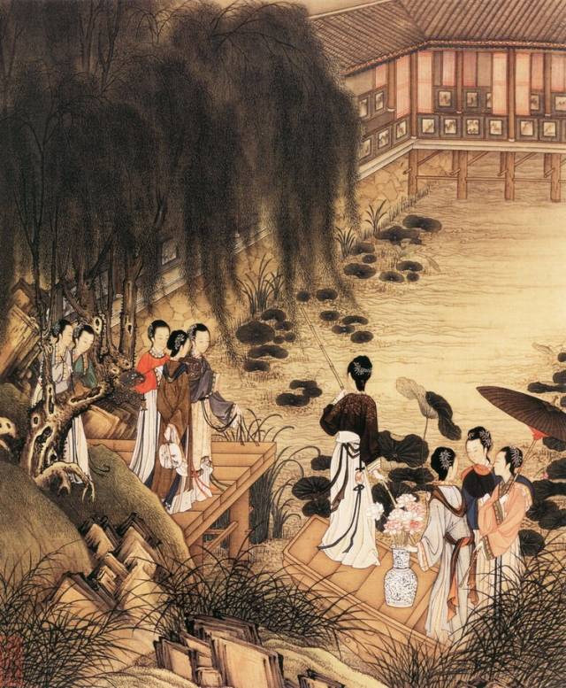 荷叶罗裙一色裁,芙蓉向脸两边开。