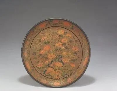 这种使用金粉绘制的金彩经低温烘烤,然后用玛瑙棒或石英砂磨擦,能够发出金灿光泽,达到镀金效果。