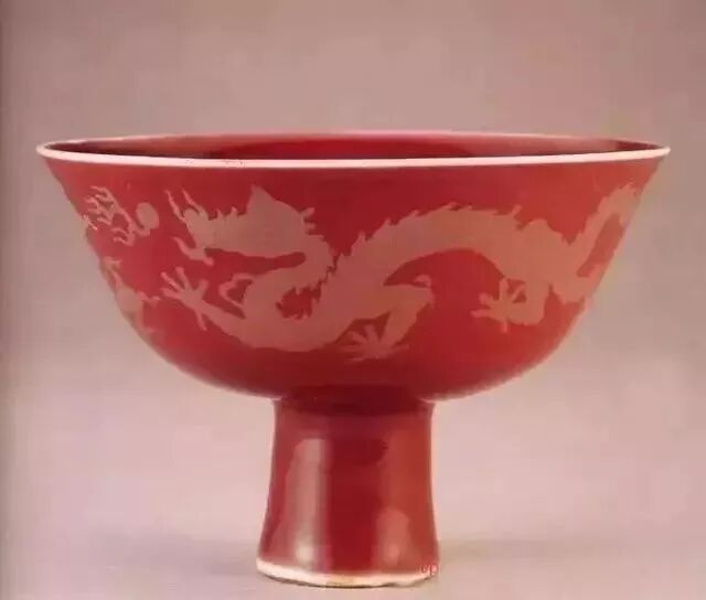 右 祭红金彩双龙赶珠纹高足碗 台北故宫