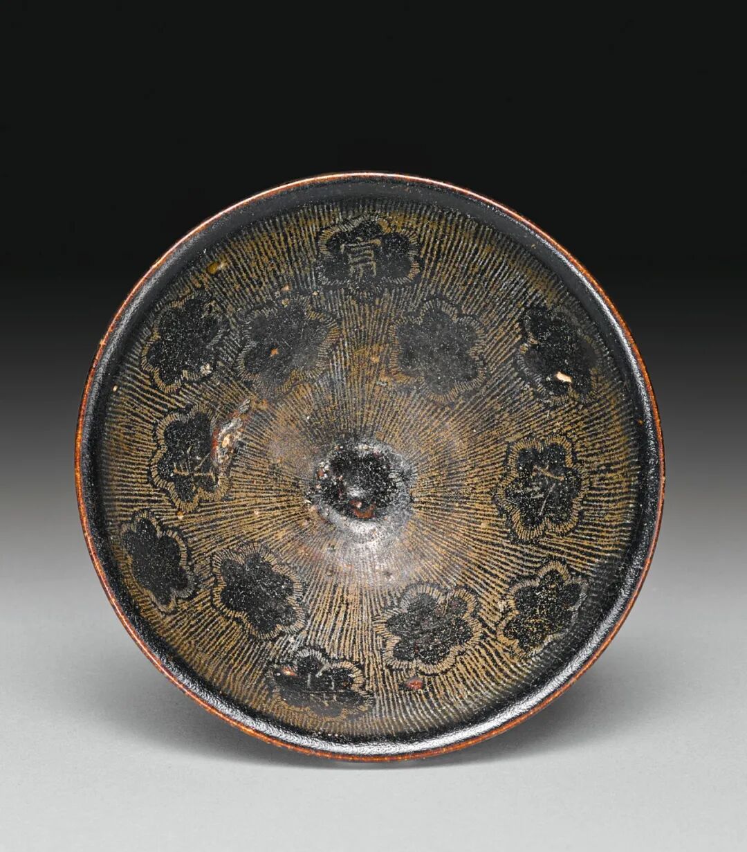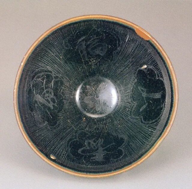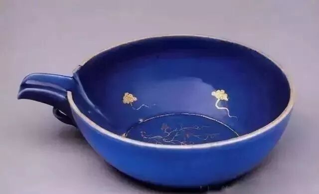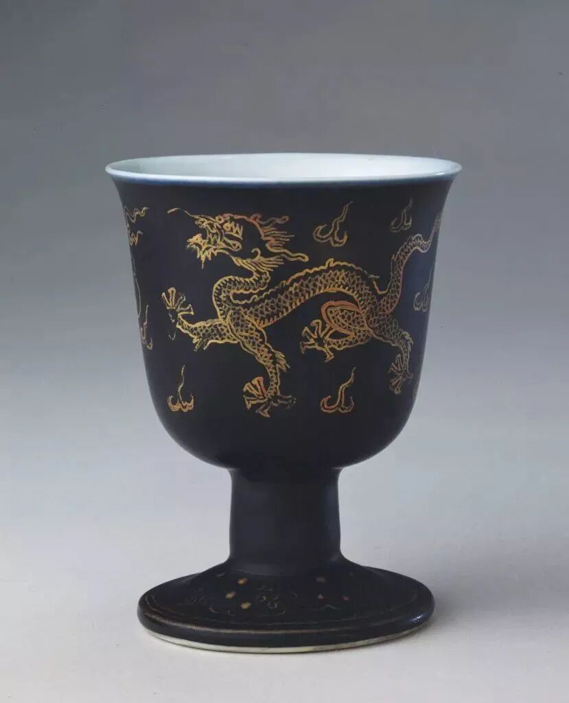 宋代定窑瓷器上有用金彩装饰云龙纹的,建窑黑釉器上也有用金彩描绘纹饰。元代在烧成的祭蓝釉瓷器上用金描绘花纹,再经彩炉烘烤。
