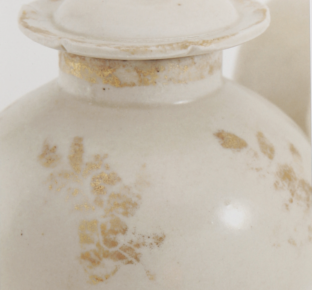 唐代已有金彩彩绘陶俑,但数量极少。宋代以后用金彩作装饰的瓷器数量逐渐多了起来,但总体来说仍数少数。金箔贴金技术在唐、宋瓷中都有发现。