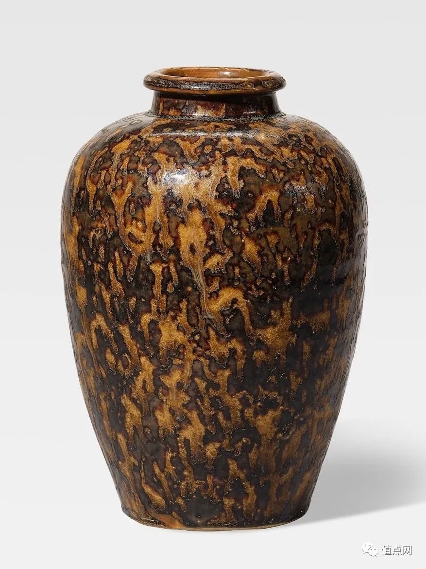 至于南方吉州窑,除了黑釉剔花、木叶纹等各色装饰外,玳瑁釉亦是有名。玳瑁釉是一种窑变釉,匠人先在器物上施氧化铁含量较高的釉料,然后再随意甩洒氧化铁含量较低的釉料,烧成时产生交融、流淌,呈色如天然玳瑁,又千变万化,另有一釉情趣。