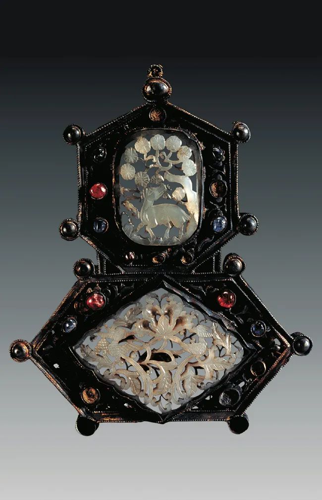↑明代,嵌玉鎏金银饰,上海打浦桥明墓出土 关注公众号:老货圈