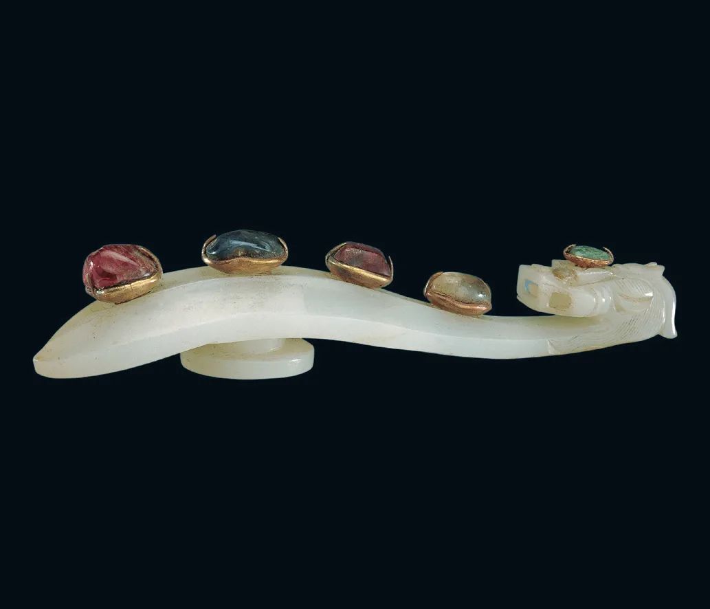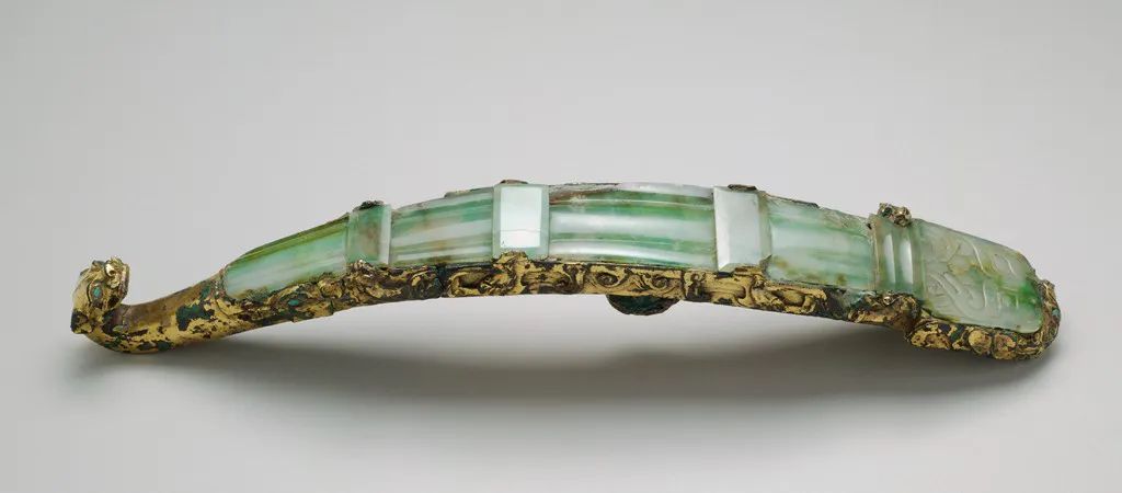 ↑战国晚期嵌玉螭带钩,哈佛艺术博物馆藏