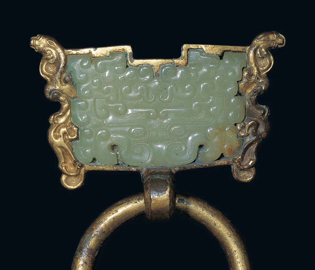 ↑西汉,嵌玉鎏金铜辅首,满城汉墓出土,