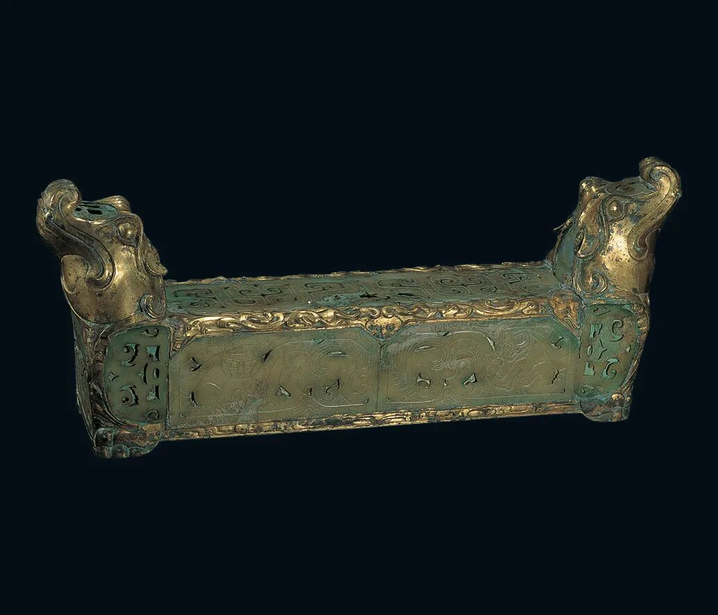 ↑西汉,嵌玉鎏金铜枕,满城汉墓出土