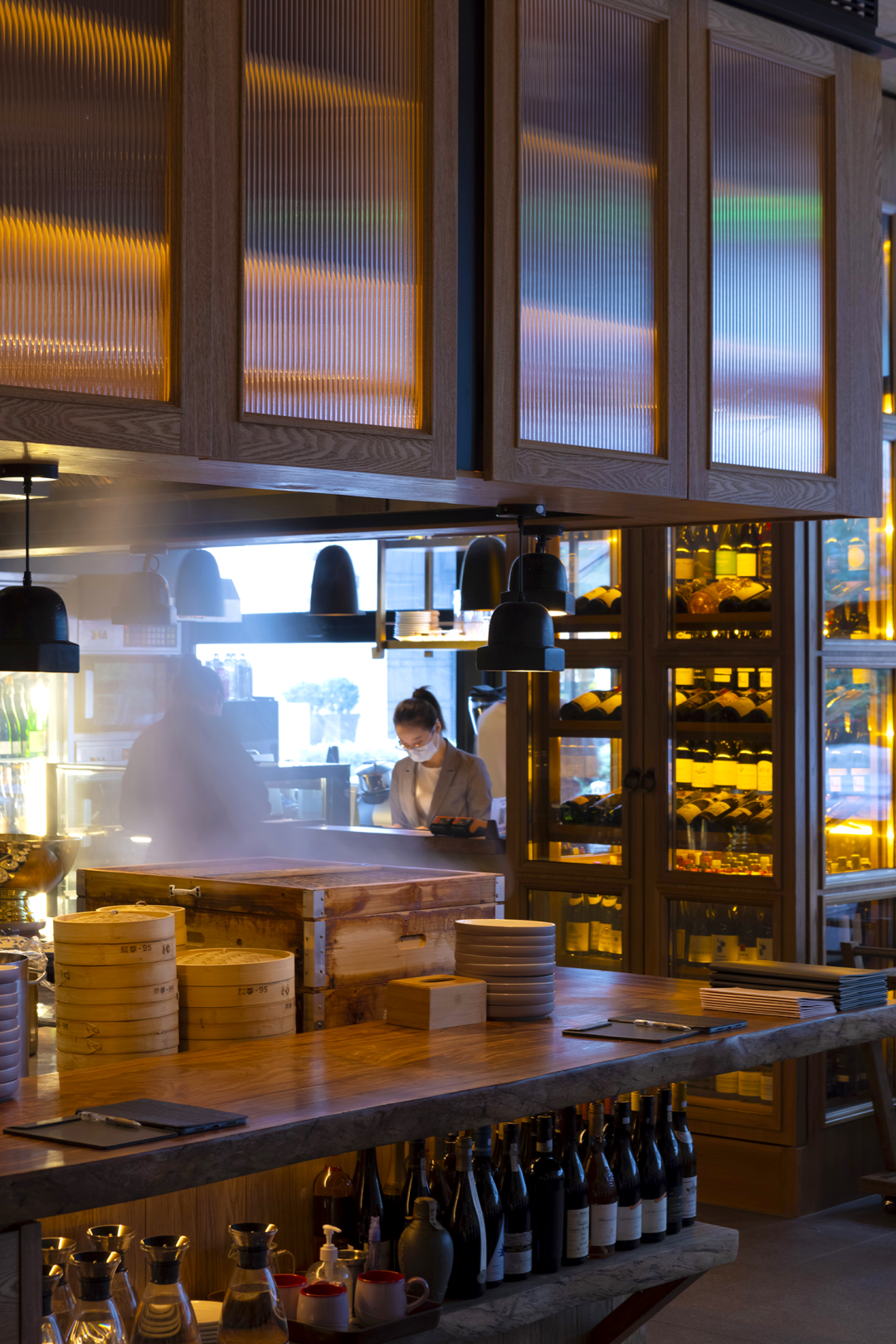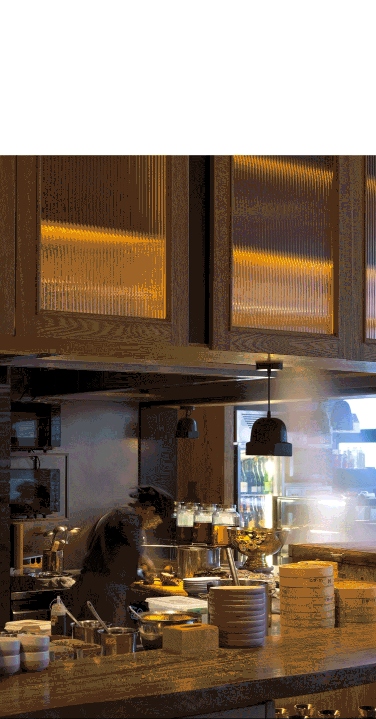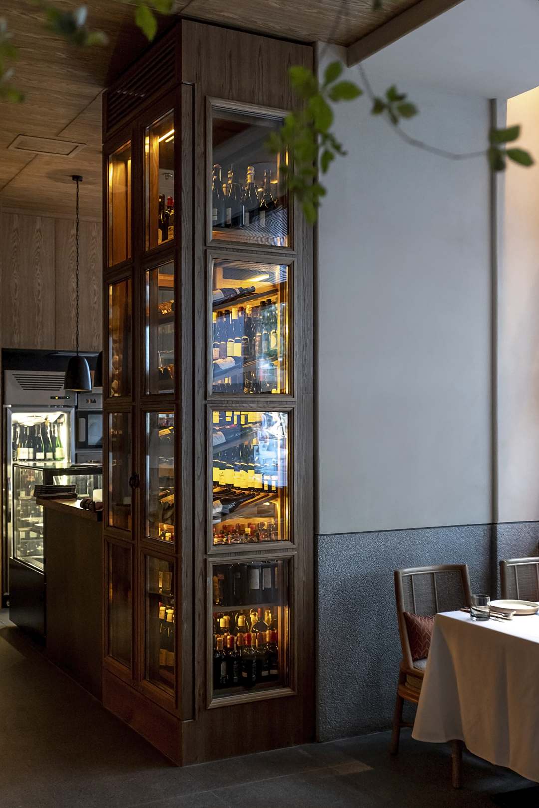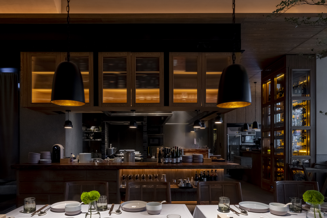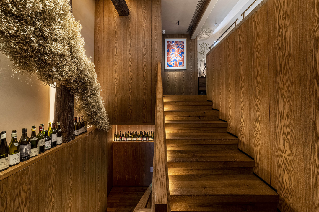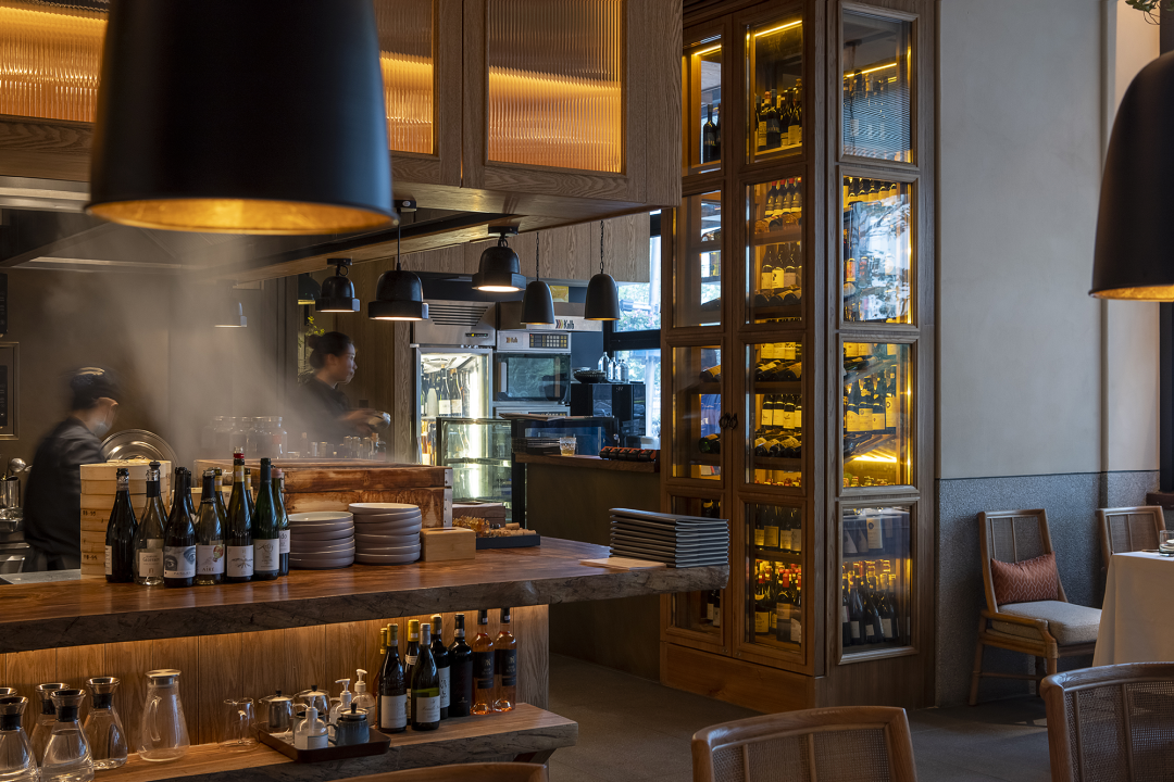 开放明厨设计是小馆的核心所在,在厨师与食客的互动中,热闹的景象传递出真实的人间烟火,生动的用餐氛围油然而生。种类丰富的美酒出现在专门定制的实木边框恒温酒柜中,也随意摆放在吧台各处,爱酒之人可根据自己的喜好,尽情满足那颗自由之心。