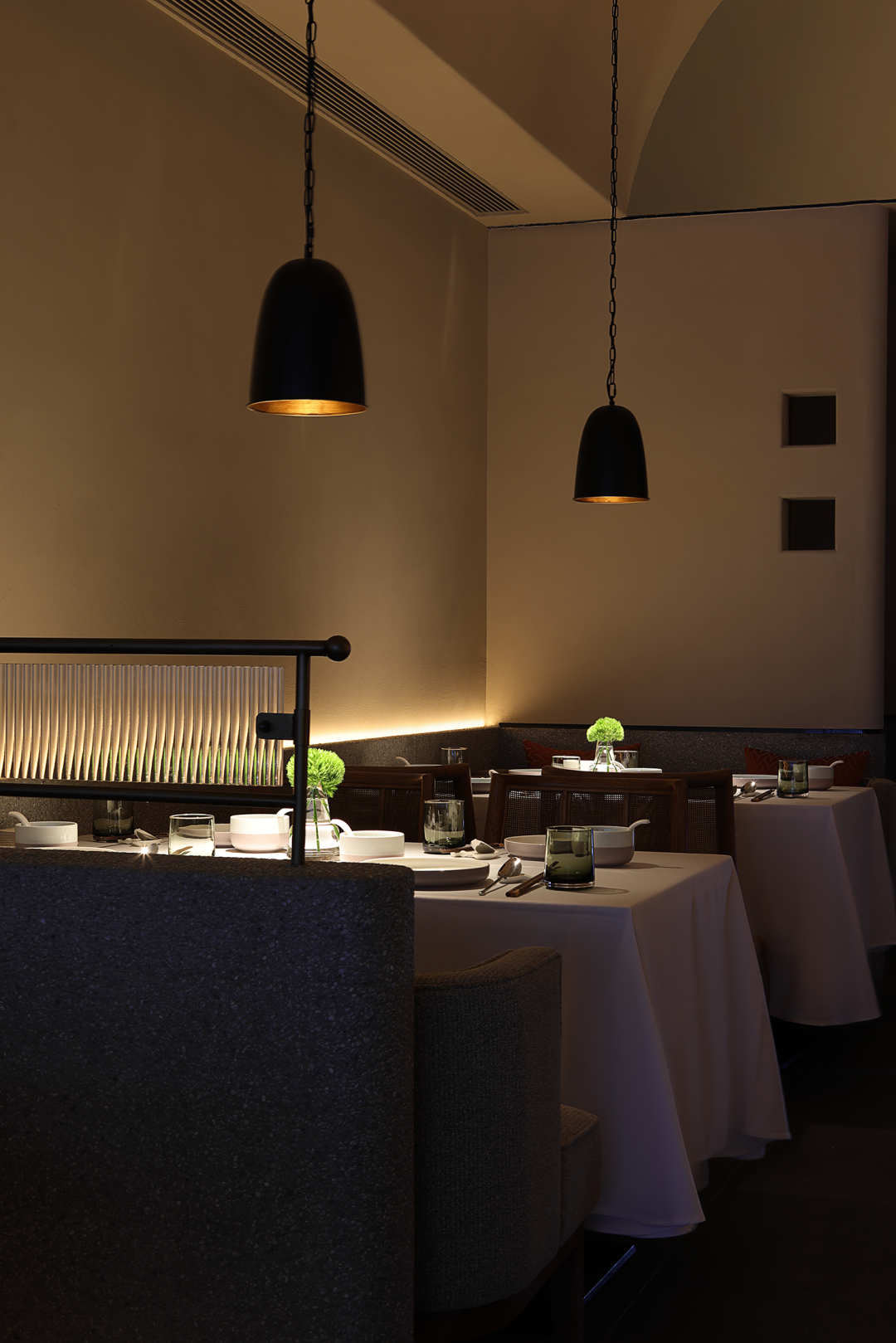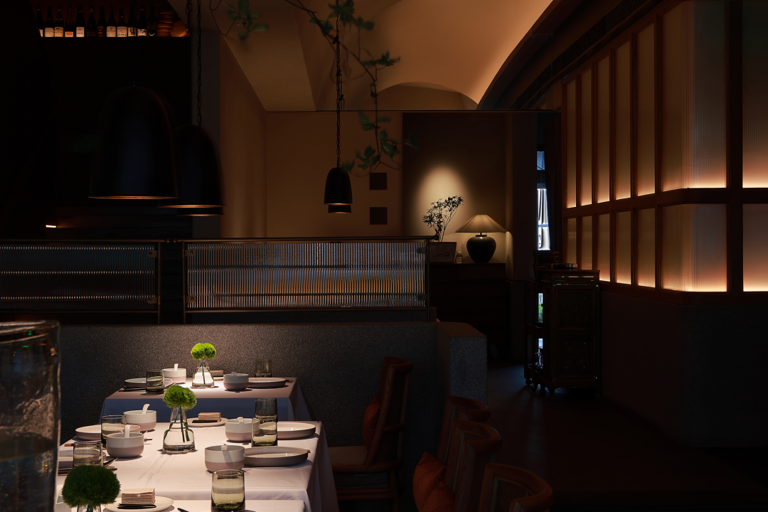 设计师特意增设了观景阳台,一步之间,却为空间提供了充满禅意的“呼吸之感”,勾勒出含蓄的东方美学。闻风、听雨、看四时之景,味蕾不断进化,记忆不断涌现,人们因难得的相聚而愈发珍视的情感,润物细无声,却无所不在。